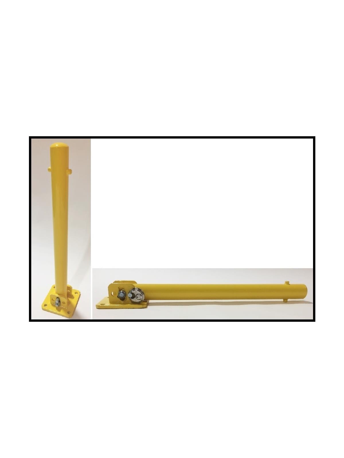 These hinged bollards fold at a 90 degree angle to quickly allow or restrict vehicle access. Schedule 40 Steel Powder Coated Yellow. Padlock (sold separately) easily secures up & down position. Surface mounted. Dome top. FOB Shipping Point.