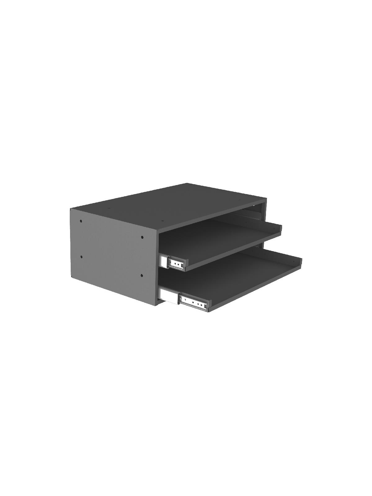 Efficient storage and organization for a variety of parts and components. Each compartment box interior is manufactured of polypropylene with scooped bottoms, both front and back for easy parts removal. Rugged steel, all-welded cabinets are reinforced for rigidity. Use on the workbench, counter, or carry to the job site with convenient thumb-grip handles. Easy Glide Slide Racks hold up to 40 lbs. per cradle. The Heavy Duty Bearing Slide Racks hold up to 75 lbs. per cradle. Finished in acid and rust resistant Gray powder coating. Order cabinets to accommodate 2, 4, or 6 boxes. Compartment boxes and bases sold separately, compartment boxes sold in case quantities. FOB Shipping Point.