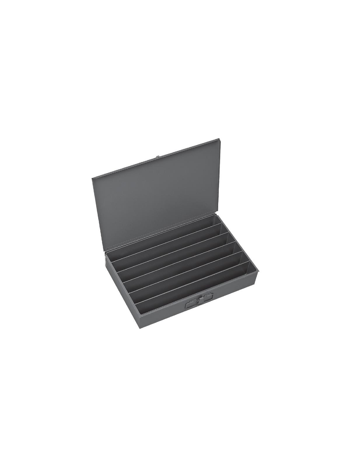 Efficient storage and organization for a variety of parts and components. Each compartment box interior is manufactured of polypropylene with scooped bottoms, both front and back for easy parts removal. Rugged steel, all-welded cabinets are reinforced for rigidity. Use on the workbench, counter or carry to the job site with convenient thumb-grip handles. Finished in acid and rust resistant Gray powder coating. FOB Shipping Point.