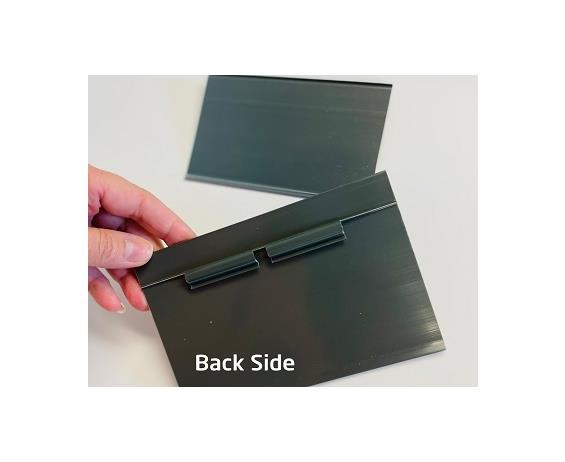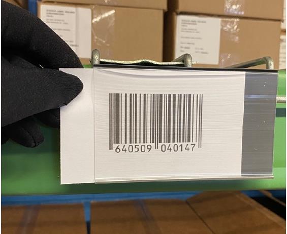 Clear front and gray background for maximum visibility. Fits all standard waterfall wire decking with 2" centers and 1/4" dia. wire. Ideal for all warehouses in normal or cold storage environments (to -20°F). Easily add signage or labels to your pallet racking when utilizing wire decking. Bar Code compatible, 25 per package. White Laser Inserts included. FOB Shipping Point.