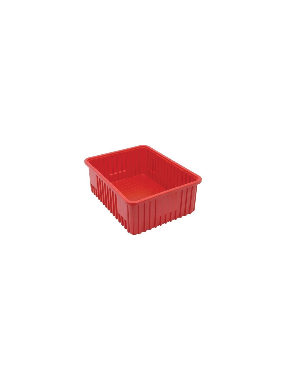 Can be used in industrial, commercial, electronic and health care industries for storage, assembly, fabrication and distribution applications. Compatible with most racks, shelving and automated, material handling equipment. Stacking rims and multi-ribbed external sides provide high impact strength. Large, smooth surface area on all four sides for content identification. Molded-in stacking ridge assures containers will stack securely with or without covers (covers sold separately). Available in Blue, Red, Gray or Clear. FOB Shipping Point.