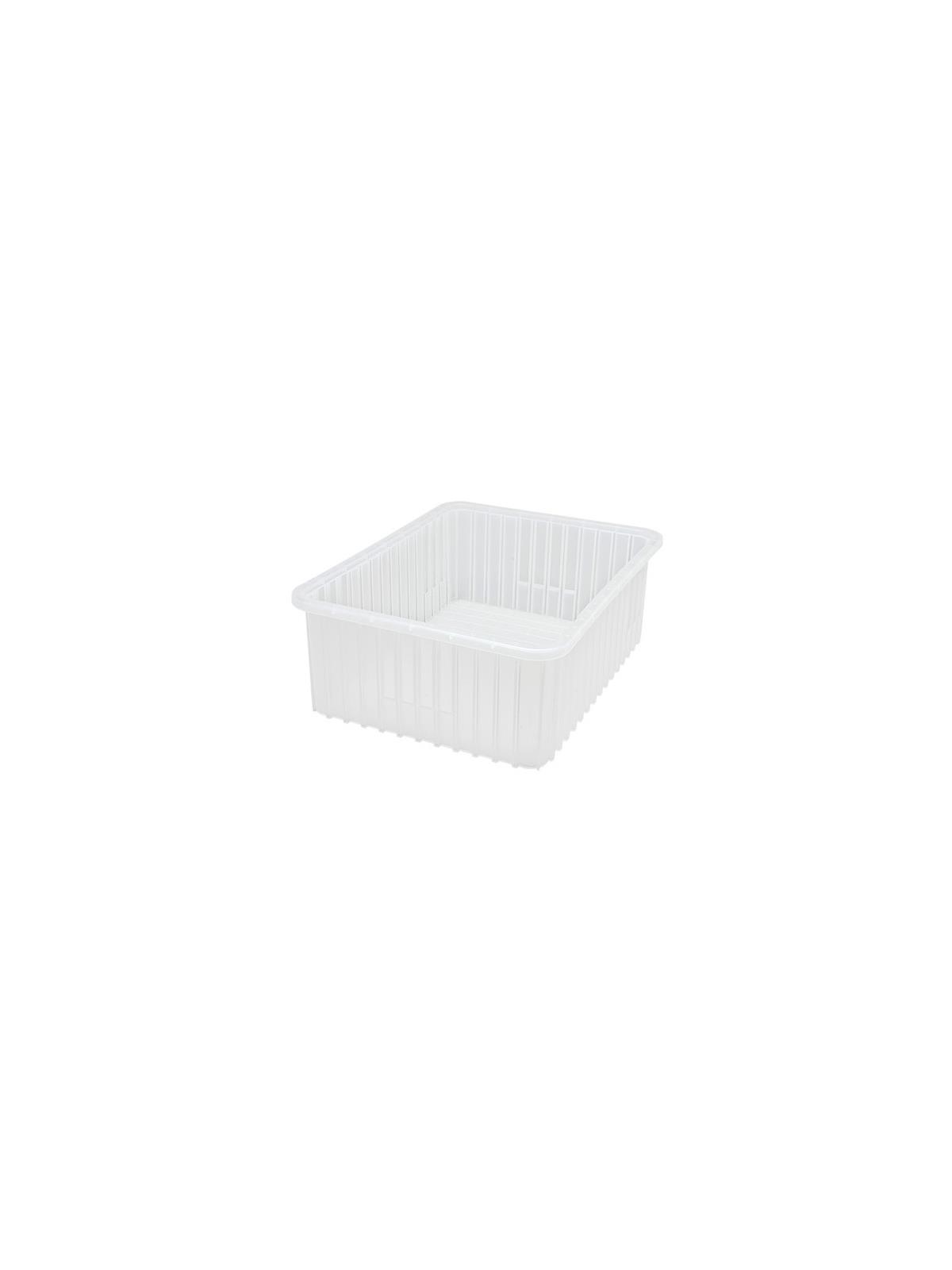 Can be used in industrial, commercial, electronic and health care industries for storage, assembly, fabrication and distribution applications. Compatible with most racks, shelving and automated, material handling equipment. Stacking rims and multi-ribbed external sides provide high impact strength. Large, smooth surface area on all four sides for content identification. Molded-in stacking ridge assures containers will stack securely with or without covers (covers sold separately). Available in Blue, Red, Gray or Clear. FOB Shipping Point.