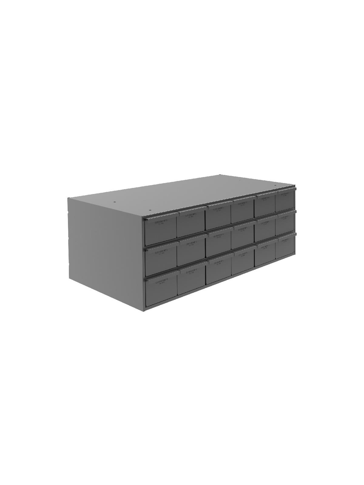 All-welded heavy-duty frame features vertical support for extra stacking strength. A positive stop mechanism prevents drawers from falling out. Drawers also feature double interlocked design for additional rigidity. Full-width handles for a firm grip. Each drawer complete with 2 adjustable dividers. Extra dividers sold below. Fits standard shelving. Finished in rust and acid resistant Gray powder coat. Fully assembled. FOB Shipping Point.