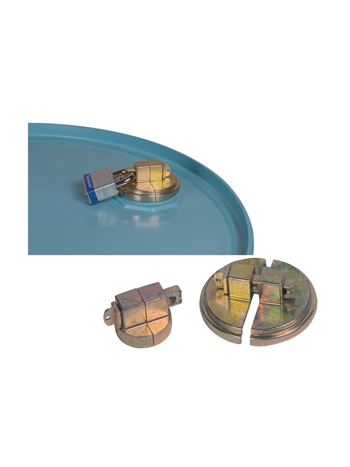 Drum locks are a cost effective solution to controlling storage concerns for all types of liquids, semi-liquids, and powders that come in standard drums. Made of corrosion resistant, non-sparking zinc die cast, the units easily install around the drum bung glange with no risk of cross threading. Sold as pairs, these drum locks fit the most popular styles of steel and plastic 55-gallon drums. The steel set includes two units; one to fit over the 2" NPT plug, and the other to fit over the 3/4" NPT plug. The plastic set includes two units which fit over both 2" plugs. FOB Shipping Point.