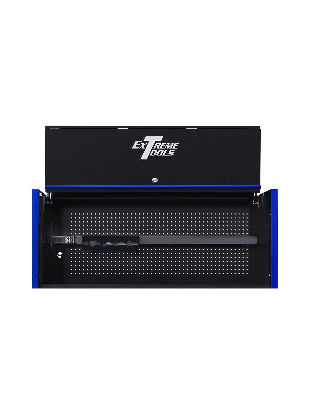 HDX552508RC 55"W x 25"D 8 Drawer Roller Cabinet including Power Tool Drawer HDX552501HC 55"W x 25" D Extreme Power Workstation Hutch • Full-extension ball bearing slides load rated 100 lbs. for single slides and 200 lbs. for double • 14-gauge steel construction • Akzo Nobel powder coat finish on hutch, tool box and drawer pulls • Patented self-latching drawer pulls made from all metal components - no plastic to bend or break • Four mag wheel casters load rated 900 lbs. each (2 locking swivel and 2 rigid) • Hutch includes adjustable shelf, Power Tool Rack accessory and power strip with USB ports