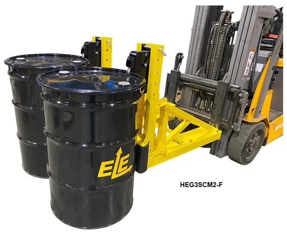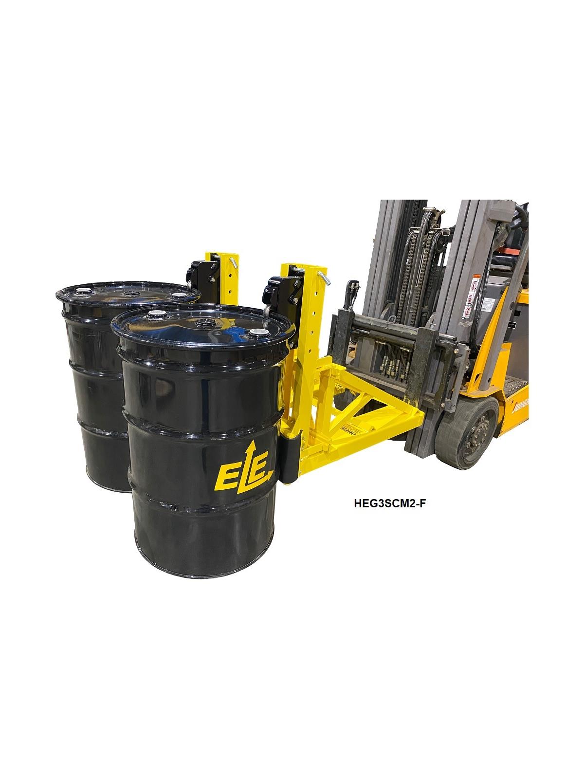 Eagle-Grip® 3 Series lift truck attachments utilize heavy-duty single automatic clamping mechanisms for handling a wide range of steel, plastic or fiber drums in high volume applications. All fork mounted models can be installed or removed within seconds and are completely mechanical, requiring no hydraulic or electrical connections to the lift truck. Double drum handling attachments are narrower than the width of two 55-gallon drums, enabling easy unloading of tightly packed drums. Quick adjustable heads allow the attachments to pick up various drum heights. Narrow Fork Frame models are also available for tight aisle applications. FOB Shipping Point. See Related Items tab for other EagleGrip® Attachment Options.