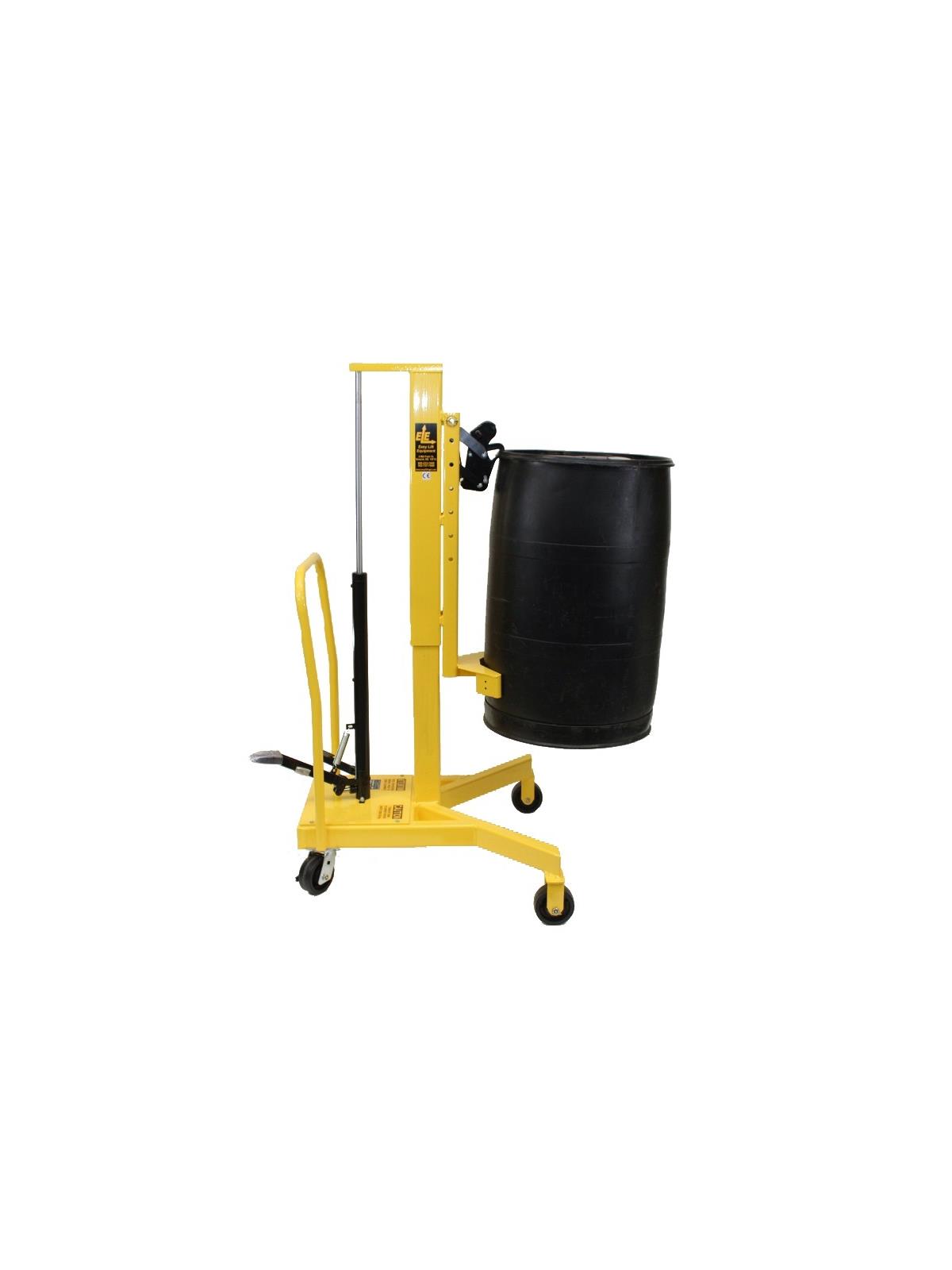 Easy Lift Equipment's most economical drum transporter. Featuring 800 lbs. of capacity. Easy Lift Equipment has developed an extensive line of ergonomic drum transporters since our original model was awarded a US patent in 1997. Designed for virtually maintenance-free operation our drum transporters help eliminate the risk of injuries caused by manhandling drums. All models are available with both intrinsically or non-intrinsically safe scales; for quickly and accurately weighing drums without the need for floor scales. The EG1 and EG2L clamping heads are designed to handle a chimed plastic, steel, or fiber drum. All models are available with 20” of lift, with optional taller masts for double or triple stacking. Standard models are steel construction with safety yellow powder coating for durability. Optional FDA approved “metallic gray” powder coating, as well as full 304 stainless steel construction are also available for food and pharmaceutical applications. FOB Shipping Point. See (Related Items) tab for EasyLift Drum Transporter Options. ***All pricing may be subject to change.***