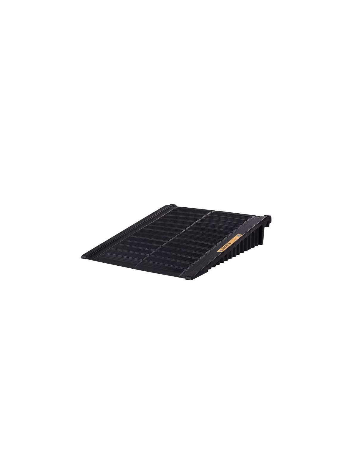These weather resident outdoor DrumSheds™ offer you high performance spill control and help reduce landfills by using recycled products. Features convenient roll top doors allowing access from front or rear. Forklift pockets front and back make it easy to relocate empty sheds. The EPA/SPCC compliant leak proof pallet sump features thick, durable deck grating which removes for easy inspection and clean up of spills. A spacious interior offers ample head space to accommodate working operations with funnels or pumps. Safety features include grounding capability and integral anchor bolt locations for wind resistance. Molded in lugs accept padlocks for security. Ships fully assembled to save on set-up time. Optional ramp simplifies drum placement. Exceeds EPA, SPCC, NFPA1, and the Int'l Fire Code. FOB Shipping Point.