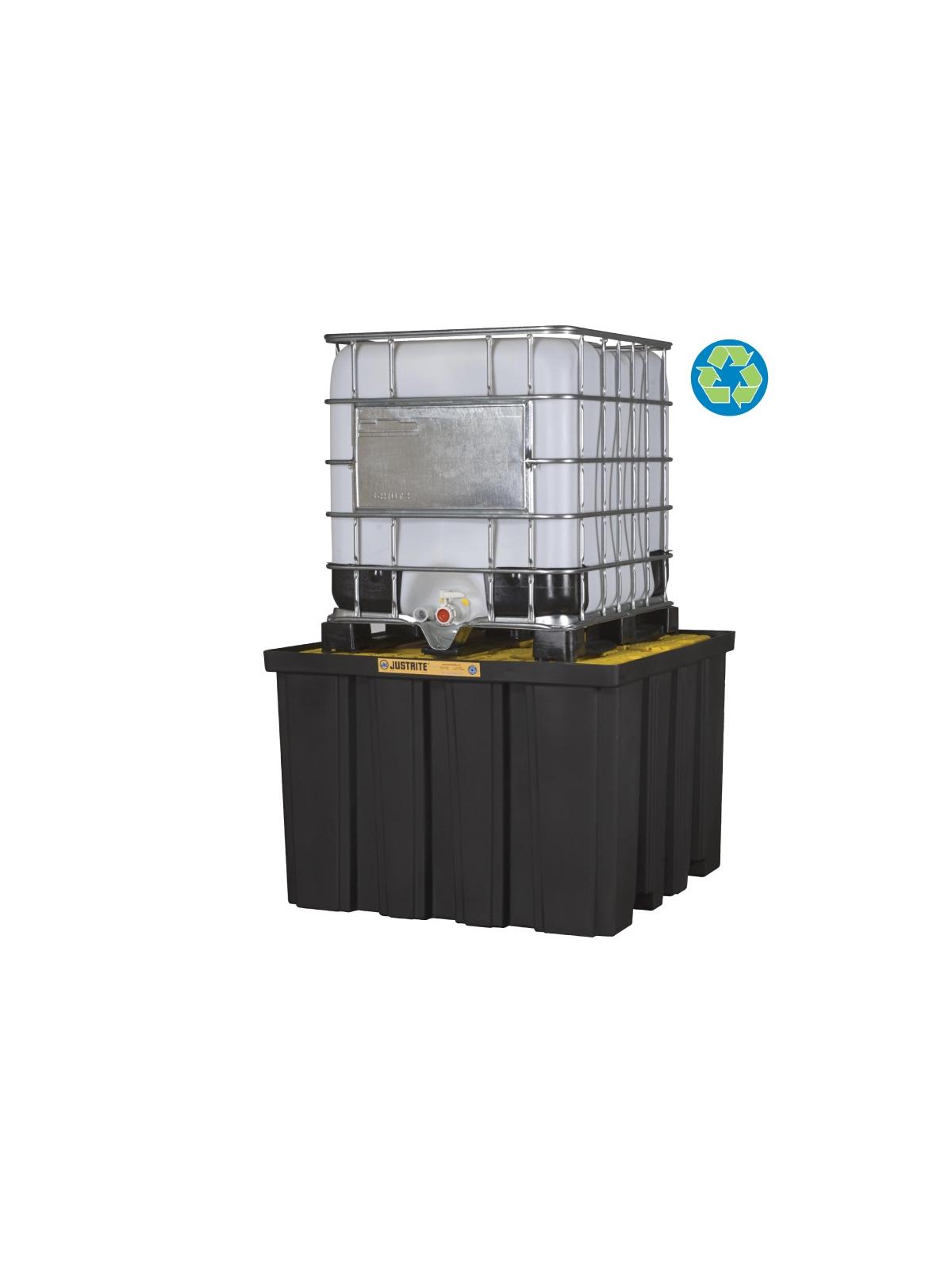 EcoPolyBlend™ IBC Pallet is made of 40% recycled, corrosion resistant polyethylene. It provides compliance to environmental regulations and helps meet green initiatives. Large 372 gallon leak tight sump reliably contains big spills. Sturdy internal pillar supports remove for easy sump cleaning. Forklift pocket front and back makes it simple to reposition empty pallet. Dirt hiding black body keeps indoor facilities looking clean. Exceeds EPA, SPCC, NFPA1, and the Int'l Fire Code. FOB Shipping Point.