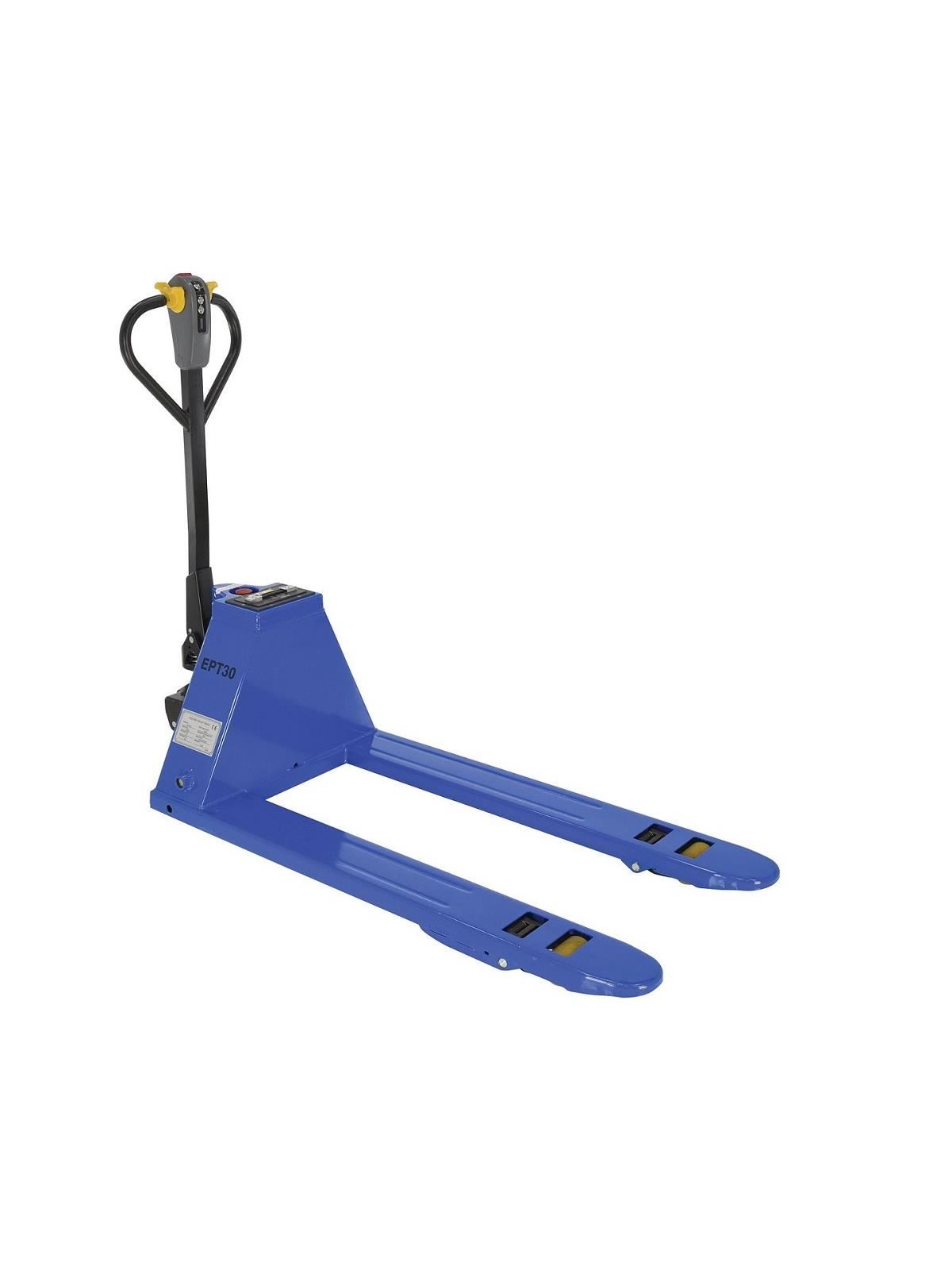 Compact body design and light service weight makes it suitable to use in tight areas and low-duty applications. Multi-function ergonomic handle with emergency reverse, battery indicator, raise/lower buttons, horn, and forward/reverse butterfly switch. Handle returns to vertical position automatically when released. Unit can be operated when handle is in up position (up-right driving). Equipped with maintenance free 24V/20Ah lithium ion battery. Battery is interchangeable for continuous usage. FOB Shipping Point. Due to tariffs and market conditions, pricing subject to change.