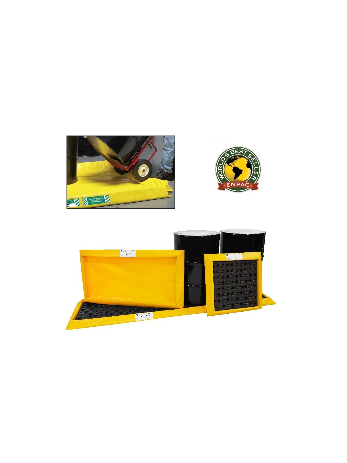 SpillPal is a low profile flexible containment alternative for drip and leak protection. The enclosed foam sidewalls make it easy to load and unload with a hand truck, while the tough industrial fabric can stand up to some of the harshest chemicals. As an added benefit, it can fold up and out of the way when not in use, saving valuable floor space. FOB Shipping Point.