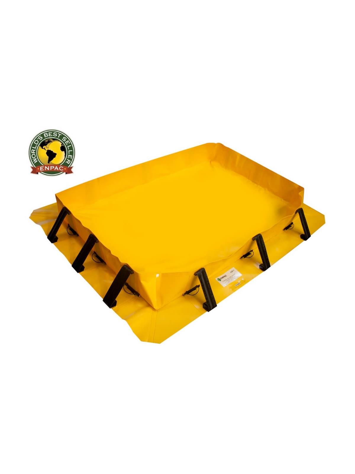Made of HD vinyl-coated polyester, the Stinger Yellow Jacket™ is chemical resistant and stands up to corrosive battery acid and more. Folds up for compact storage and transport. Excellent for various spill containment applications to decontamination. Cold rated to -55°F. FOB Shipping Point.