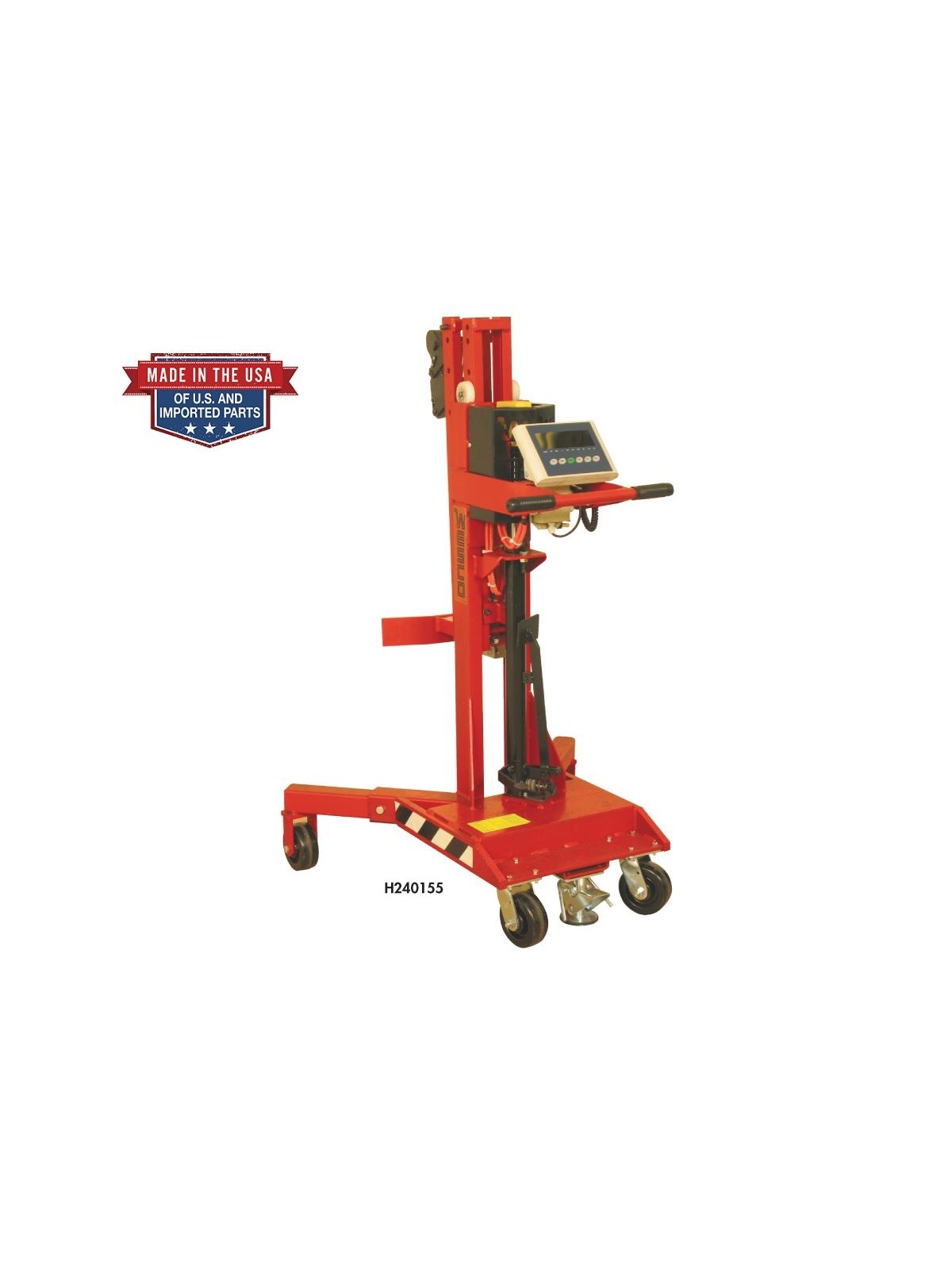 The ergonomic solution for lifting, transporting and placing drums on spill pallets. No need for the operator to touch the drum to raise, transport and lower. Features 1100 lb. capacity hydraulic jack for easy lifting of steel, poly, and fiber drums -- lifts 1" per stroke. Spring loaded grip holds any rimmed drum. Handles most 30, 55, and 85 gal. drums. Ergonomic design allows drums to be easily raised 20" above the floor. Swivel 5" x 2" phenolic casters for easy movement. Choose from five models - Standard, High Reach, Scale, Power Lift & Drive. FOB Shipping Point.