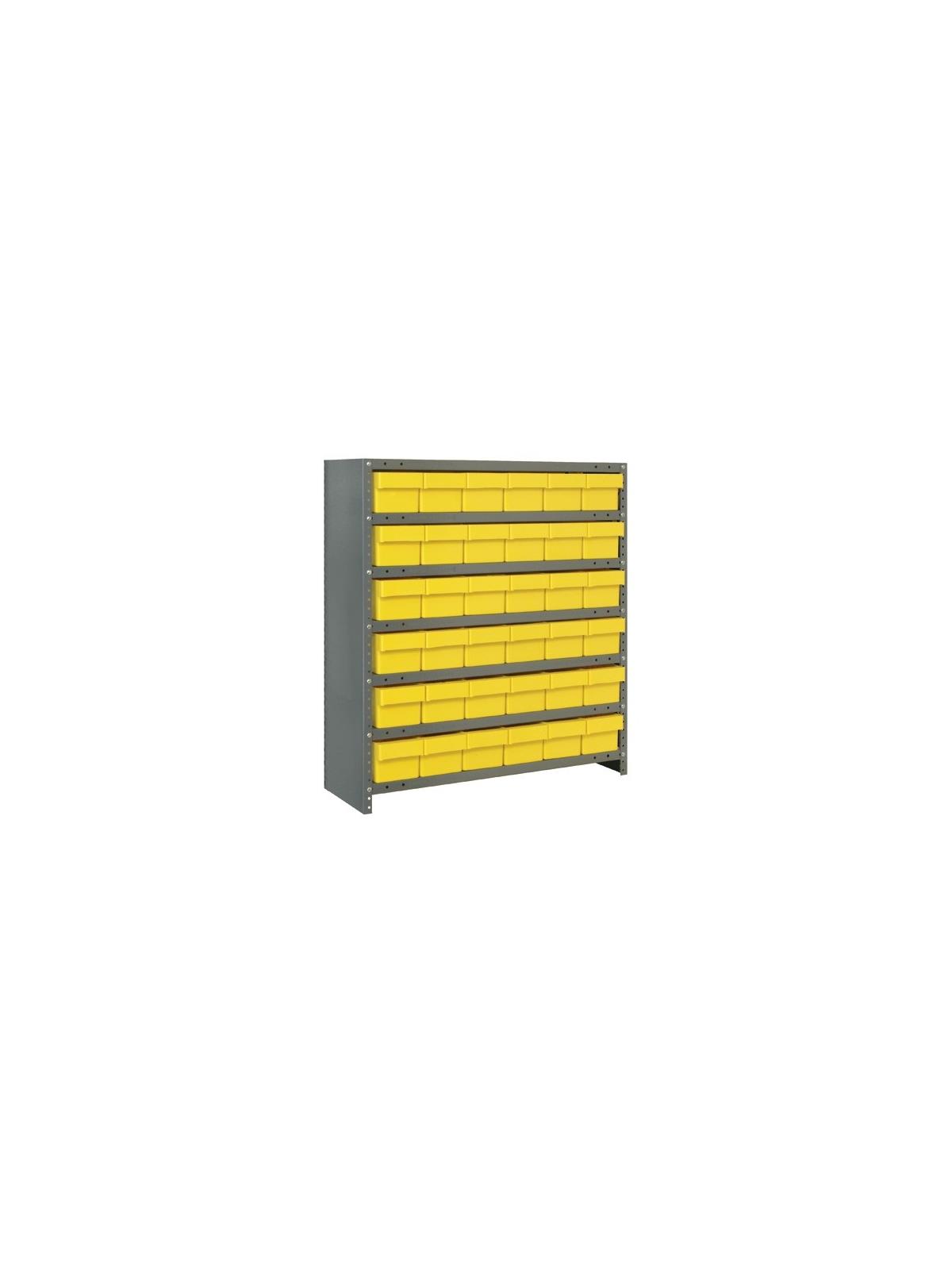 Heavy Duty Steel Shelving Units - Save time locating parts using our tough Euro Drawers with our sturdy open or closed steel shelving. 36" wide x 75" or 39" high units offer heavy-duty, high grade shelving with a 400 lb. capacity per shelf. Closed shelving provides a dust free environment for stored parts. Shelving is Gray in color. Drawers are available in Blue, Yellow, Gray or Red. FOB Shipping Point.