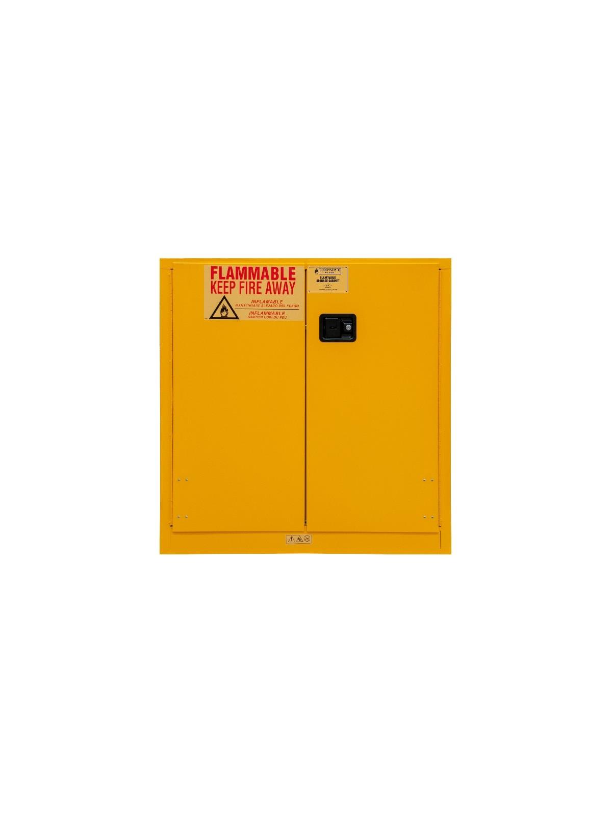 Flammable Storage Cabinets are required by OSHA and UFC in commercial and industrial facilities where flammable liquids are used and stored. Cabinets feature recessed lockable paddle latch and 3 point locking systems which greatly improves security. Bunged air vents on each side of the cabinet allows for greater ventilation. Constructed of all welded Heavy Duty Steel.