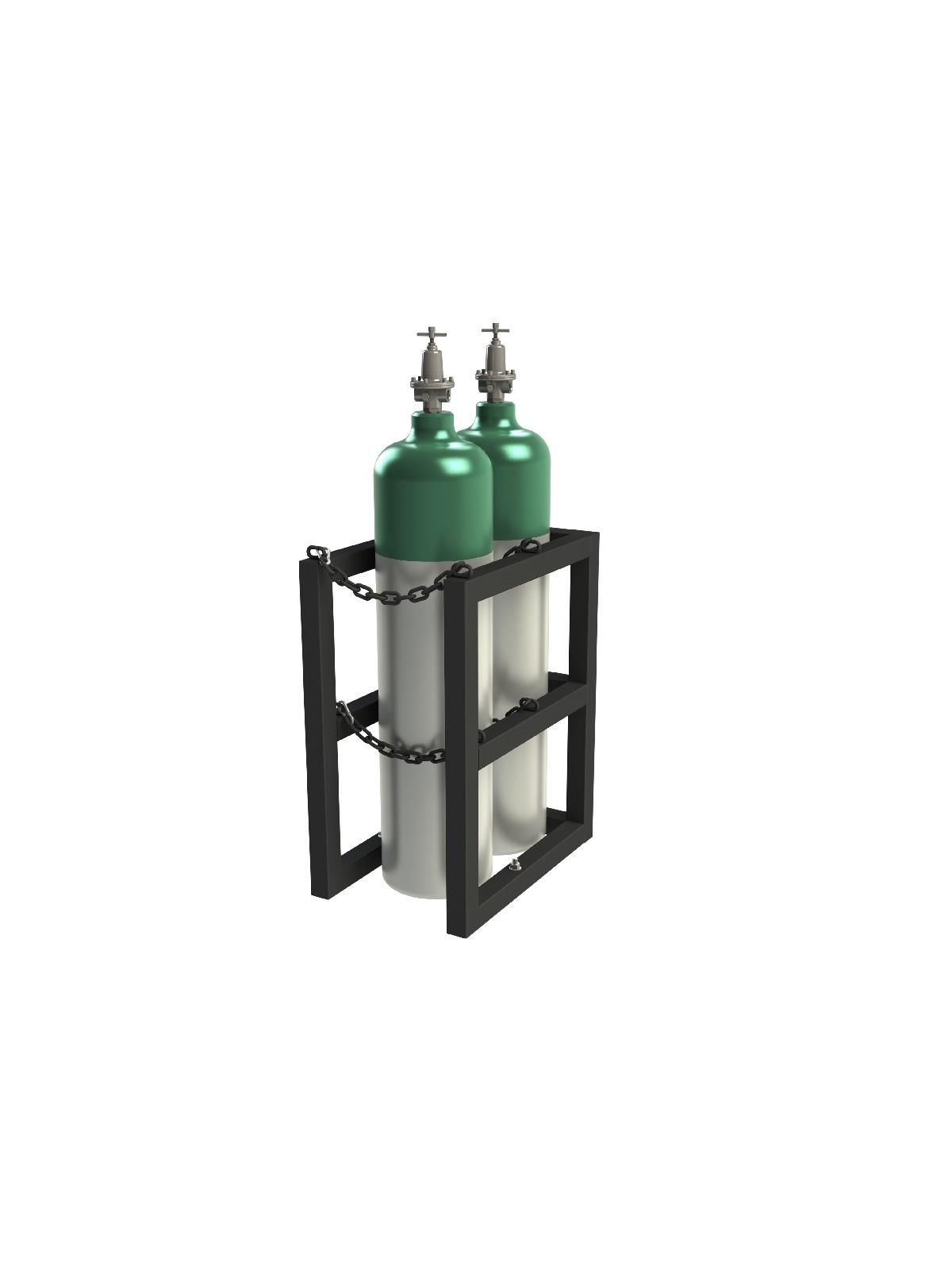 3 gauge, steel tube material can be secured to the floor with included concrete anchors. Includes chains to secure and align the gas cylinders. Organize types in their own rows. Built to meet and exceed quality and safety standards of OSHA, OSHPD, UFC, NFPA and CGA. Ships fully assembled, ready for immediate use. Black, textured, powder coat finish, good for outdoor or indoor use. FOB Shipping Point. Cylinders are not included. Steel surcharges may apply.