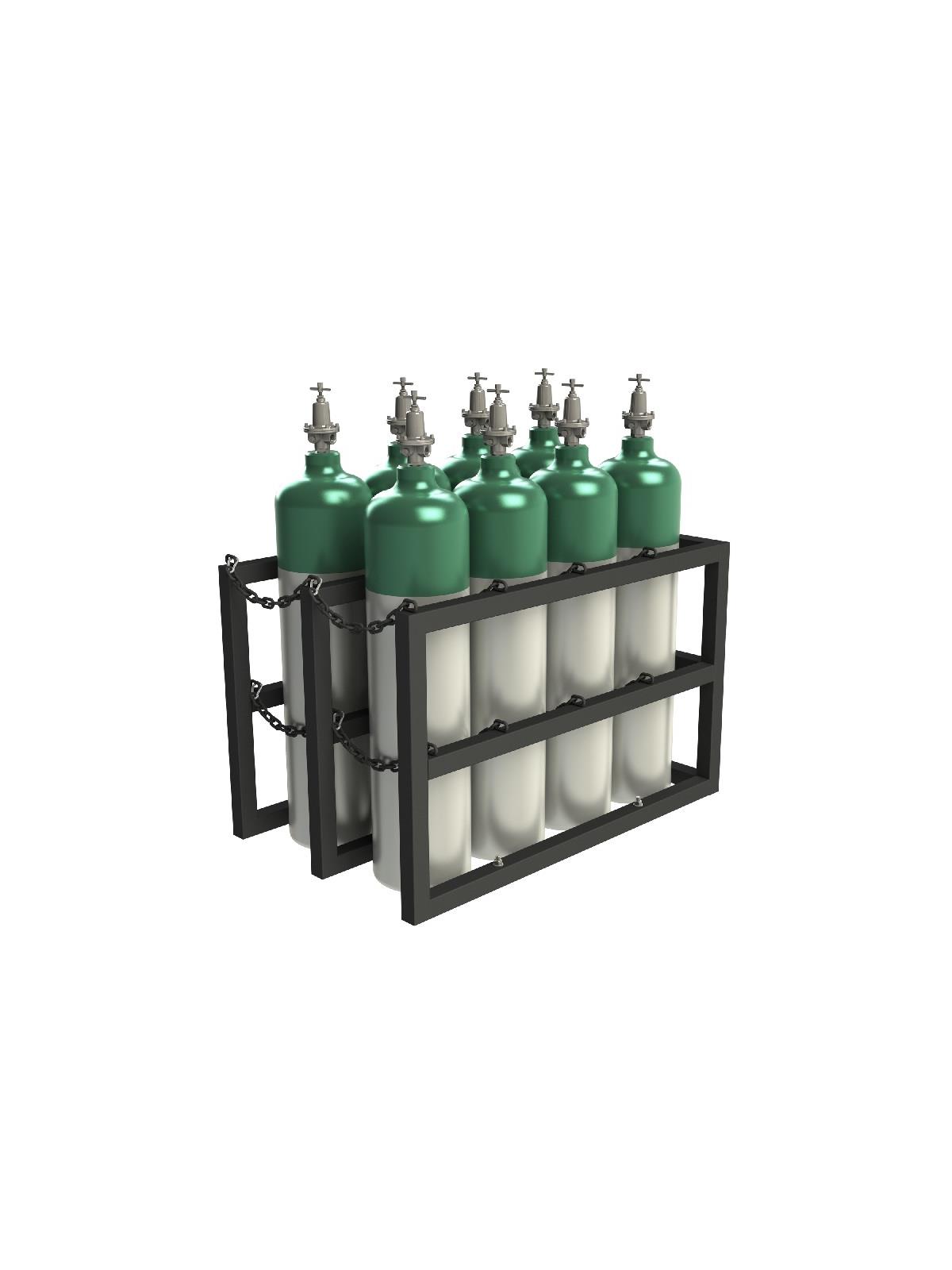 3 gauge, steel tube material can be secured to the floor with included concrete anchors. Includes chains to secure and align the gas cylinders. Organize types in their own rows. Built to meet and exceed quality and safety standards of OSHA, OSHPD, UFC, NFPA and CGA. Ships fully assembled, ready for immediate use. Black, textured, powder coat finish, good for outdoor or indoor use. FOB Shipping Point. Cylinders are not included. Steel surcharges may apply.