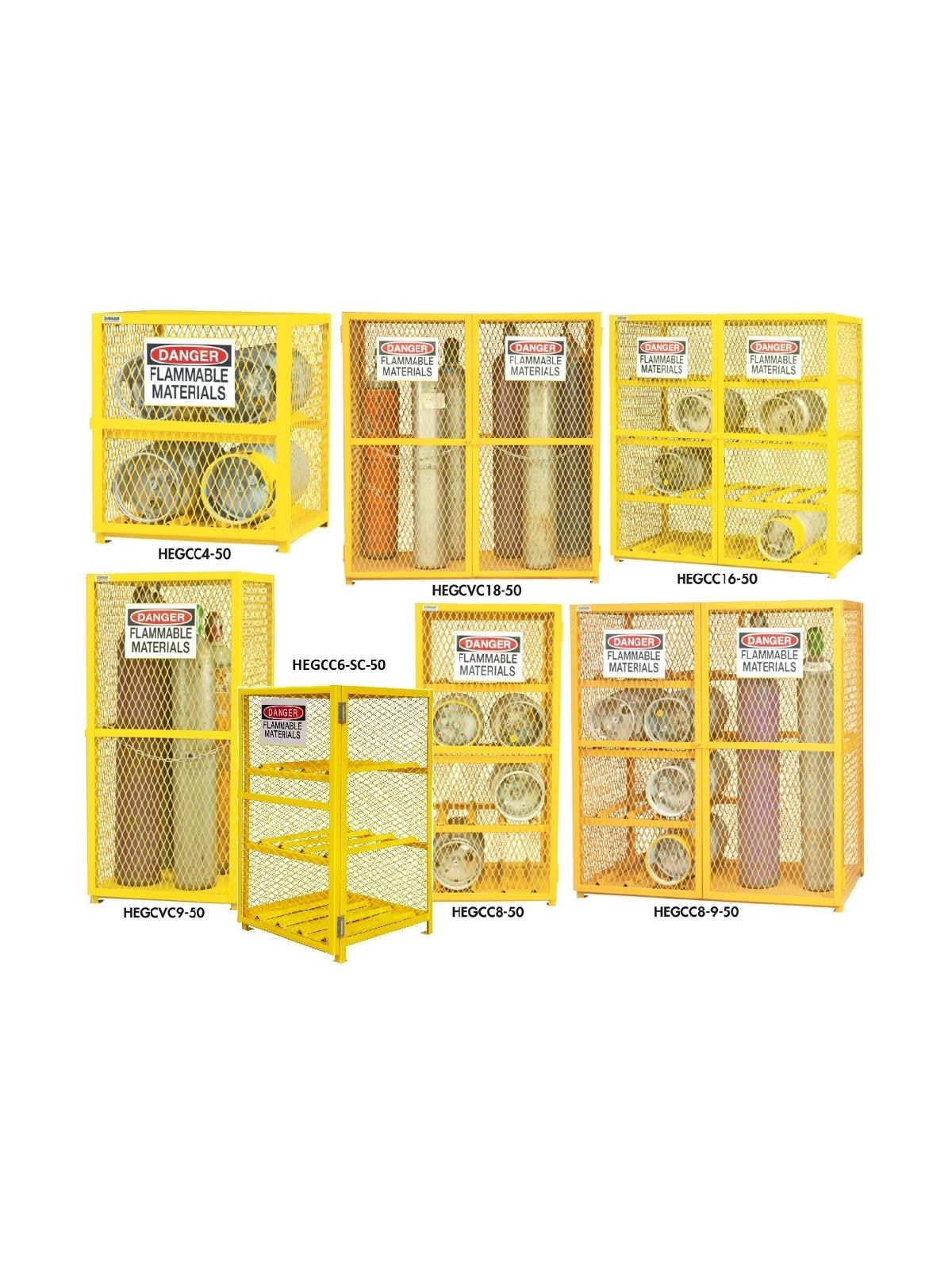 • Safely store vertical cylinders up to 59-3/4" as well as 20 & 33-1/2 lb. horizontal cylinders of flammable gases.