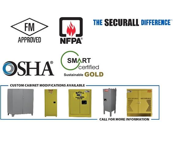 The SECURALL Difference isn't just about meeting code standards, it's about quality and innovation. It's being an industry leader for over 60 years. It's being proud to be a certified green manufacturer of products made here, in the USA. It's understanding just how complicated the nature of code compliance can be. Which is why our sales team is here to help you determine the best storage product for you. From basic flammable cabinets to modified or complete custom storage products, SECURALL has your solution.