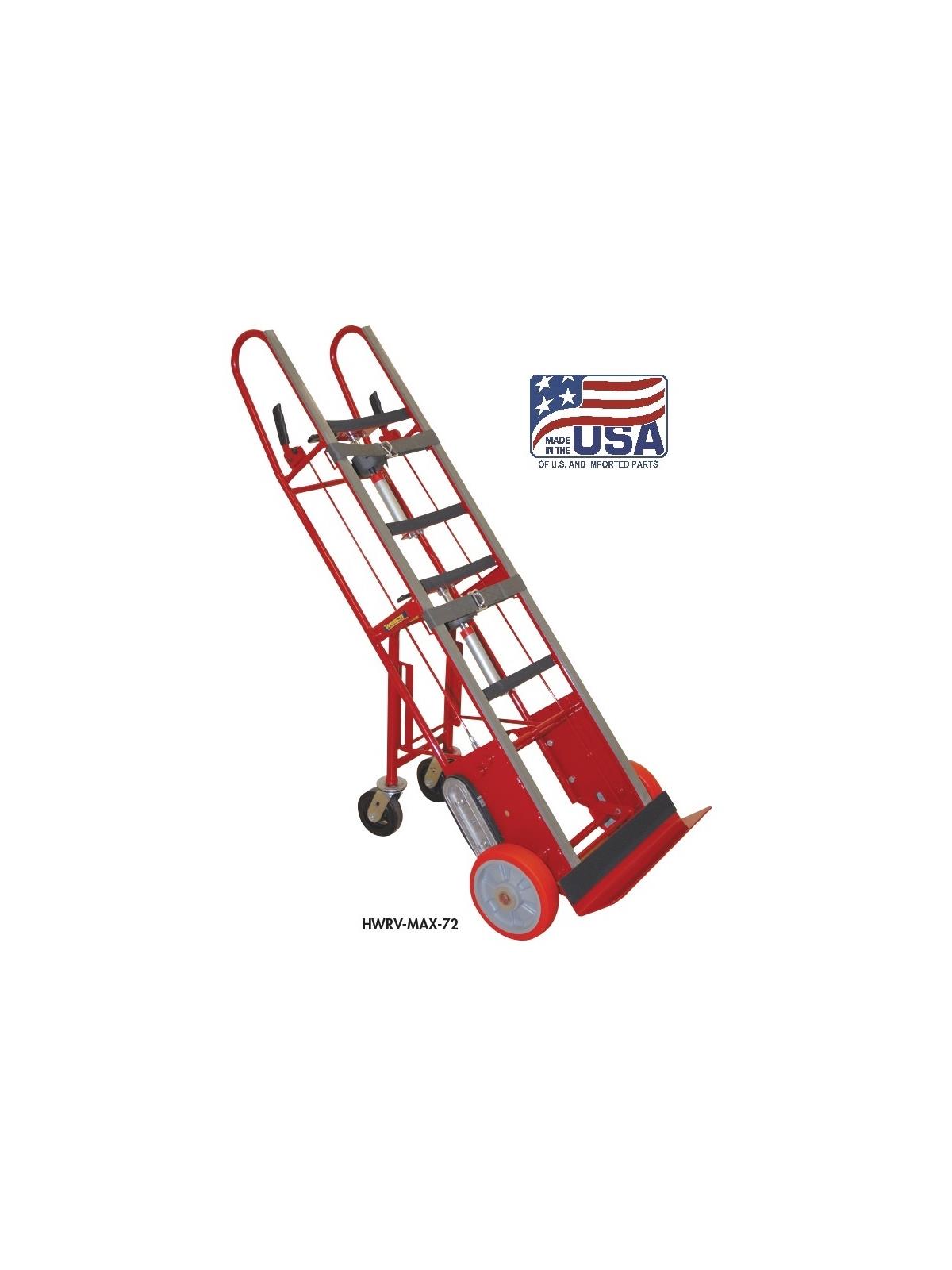 Constructed of heavy duty 1" diameter steel tubing. Dynamic fulcrum system - fulcrum point changes as truck is tilted to decrease break-over effort. Conveniently located lever releases rear carriage and activates dynamic fulcrum system. 10" x 2" poly hub, moldon rubber main wheels, 6" rear swivel casters. Folding rear carriage allows truck to be used in 2-wheel or 4-wheel mode. Available in 72" and 78" heights. 2 webbed cargo belts with auto-rewind ratchet tighteners for maximum load security. Noseplate measures 5 x 24 x 1/4" thick. FOB Shipping Point.