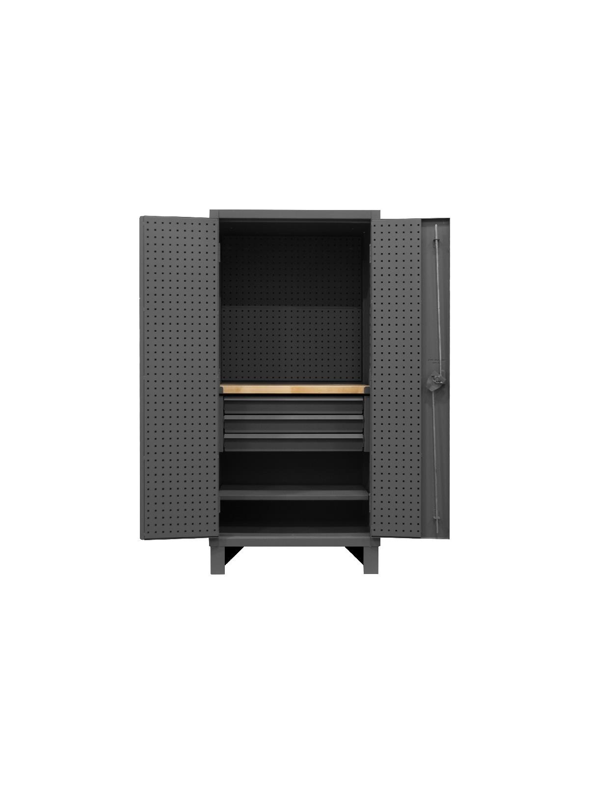 Heavy Duty Cabinet With Pegboard Doors, Drawers, 1 Shelf & Butcherblock Work Surface