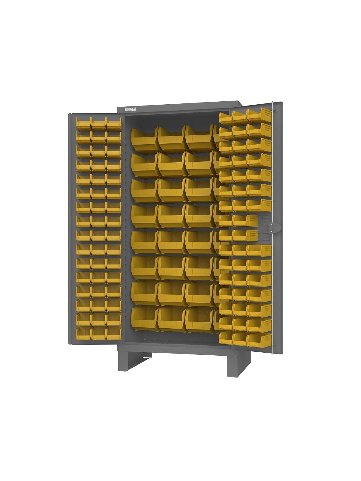 Fully welded louvered panels reinforce doors and hold Hook-On-Bins®.