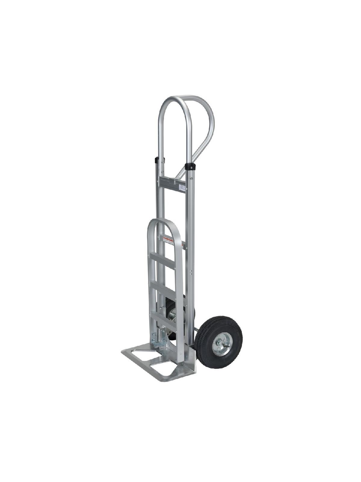 works in both vertical and horizontal positions. Easy to convert from hand truck to platform truck.