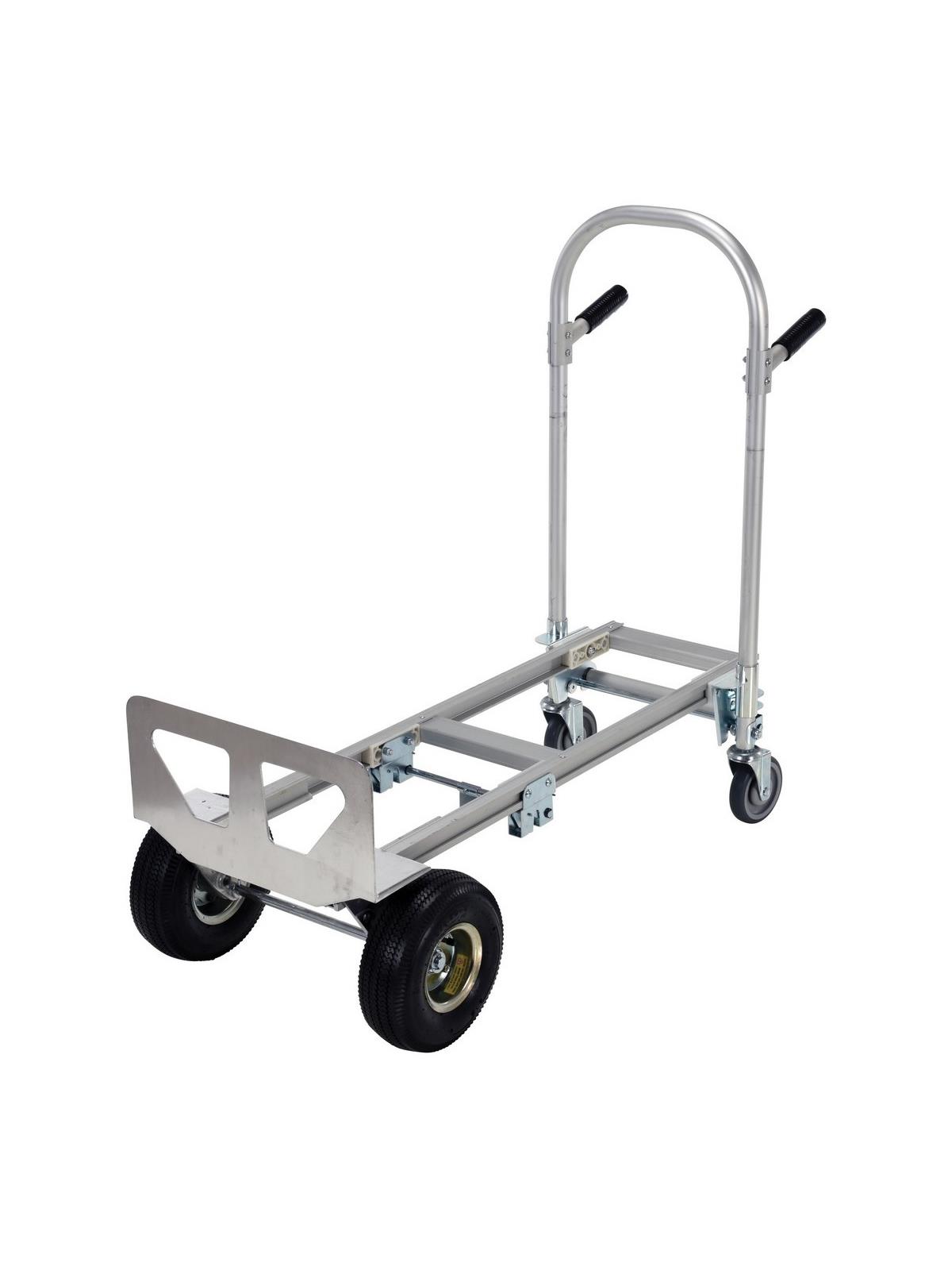 works in both vertical and horizontal positions. Easy to convert from hand truck to platform truck.