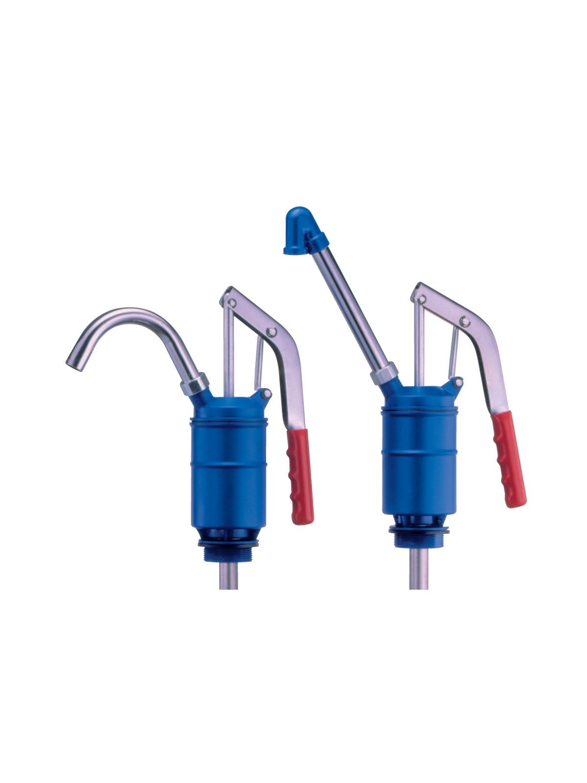 Durable and affordable. Ideal for use with high-viscosity liquids. Features high angle discharge spout with screen and normal curved discharge spout. Telescoping tube. 2" bung adapter. Grounding bolt to ground pump. FOB Shipping Point.