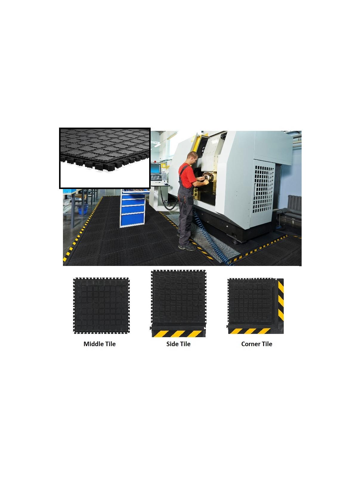 Tiles are 3/4" thick and available with black or OSHA-approved yellow striped border.