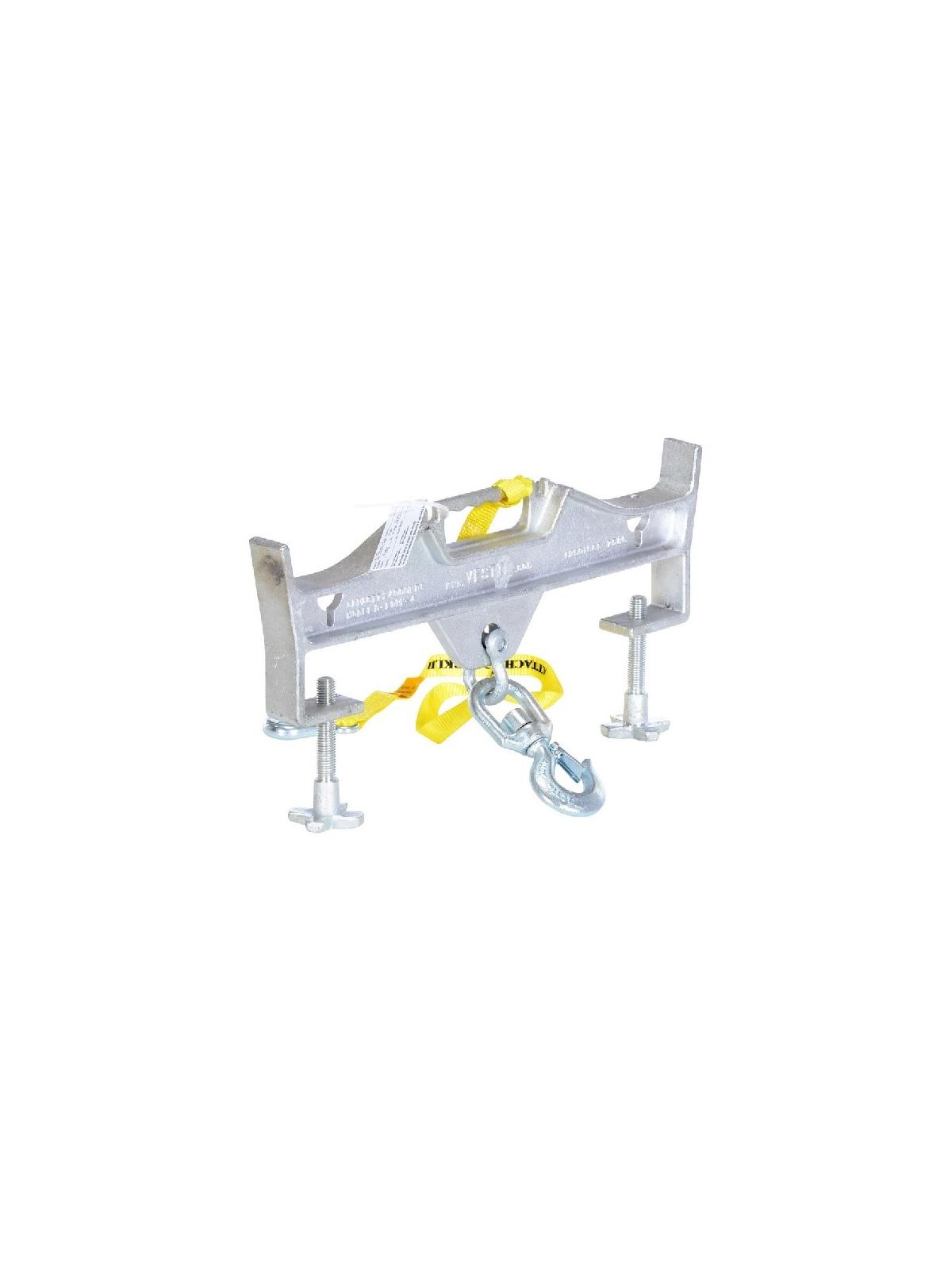 Easy to attach hoisting hook does not require special tools. Secured to the fork truck by means of a 48"L safety restraint and screw clamps. Available in single or double fork design. Both single and double attachments are zinc plated. Swivel or rigid hook with shackle included. FOB Shipping Point.