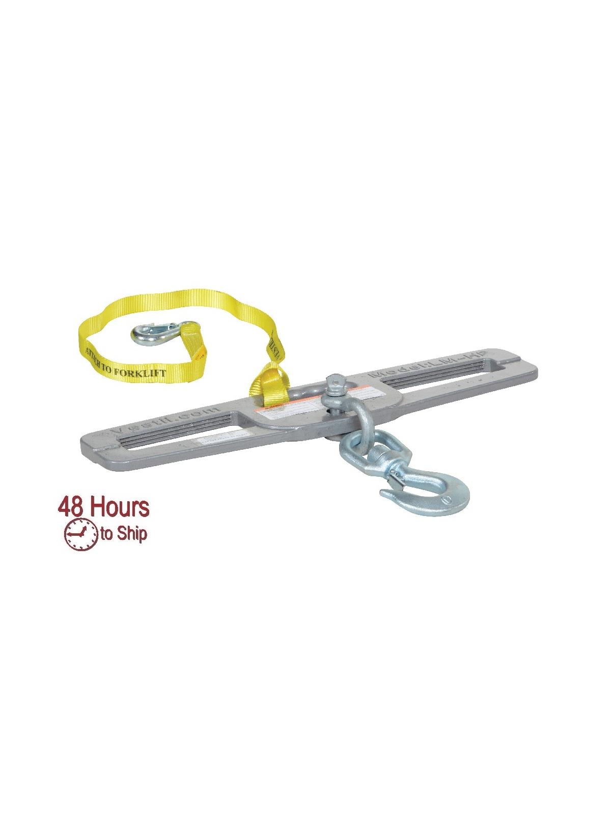 Hook Plates enable any fork truck to safely lift a load using chains, cables or slings. Features slanted fork openings measuring 6-1/2" wide by 1-3/4" high to prevent the hook plate from being used upside down. A hook with anchor shackle is included. FOB Shipping Point.