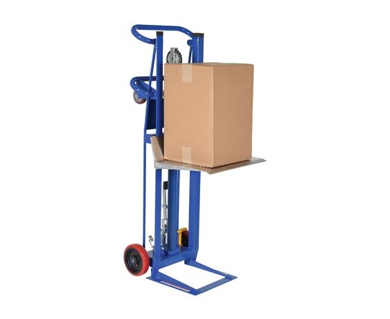 Upper wheels standard for loading into trucks. Safe, easy one person handling of loads up to 1000 lbs. Rugged steel construction for years of dependable service. Precision built hydraulic system is activated by easy action foot lever. FOB Shipping Point.
