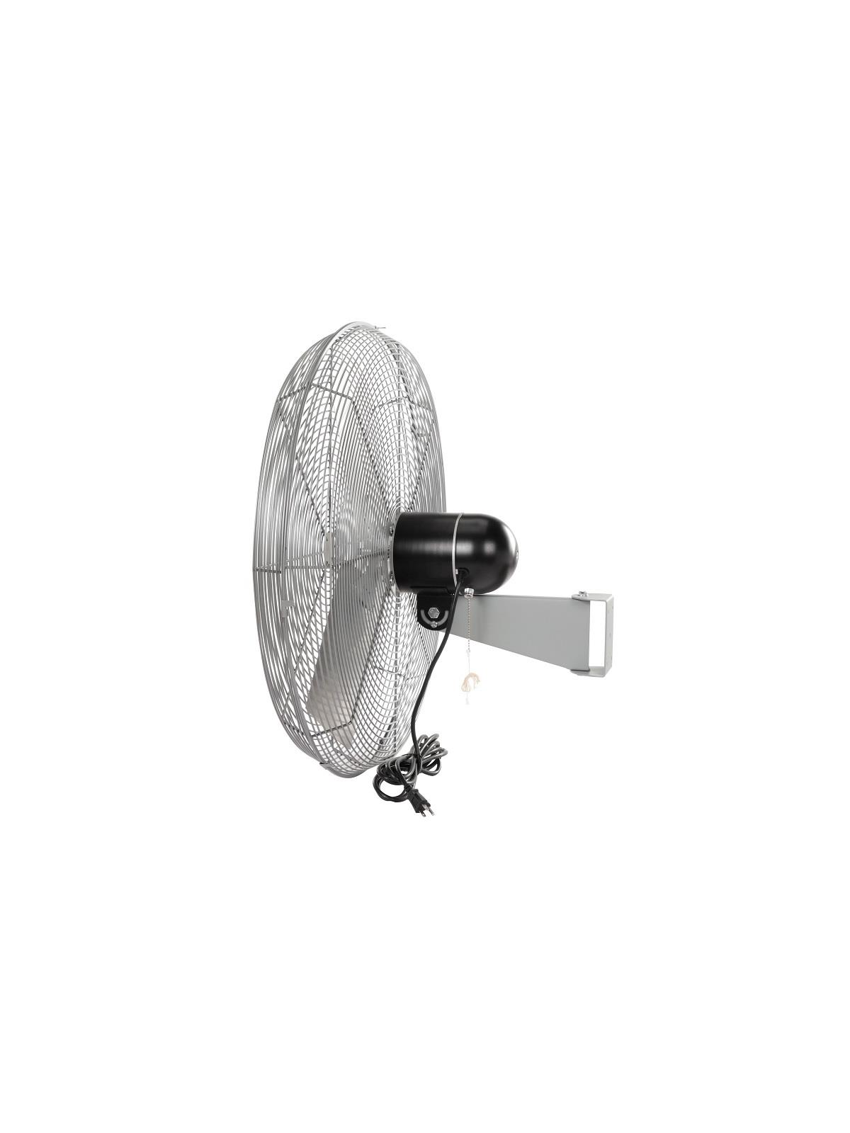 Motor is dependable 3-speed, 1/4HP, 1 phase, 115V ball bearing totally enclosed permanently lubricated permanent split capacitor. Pull chain switch. Durable blade features steel hub and spider with aluminum paddles. Fan head tilts 15° up and down for convenient adjustability. Column height adjusts 4-1/2' to 7'. Pedestal base is 26" dia. Meets OSHA standards. ETL C/US listed. FOB Shipping Point.