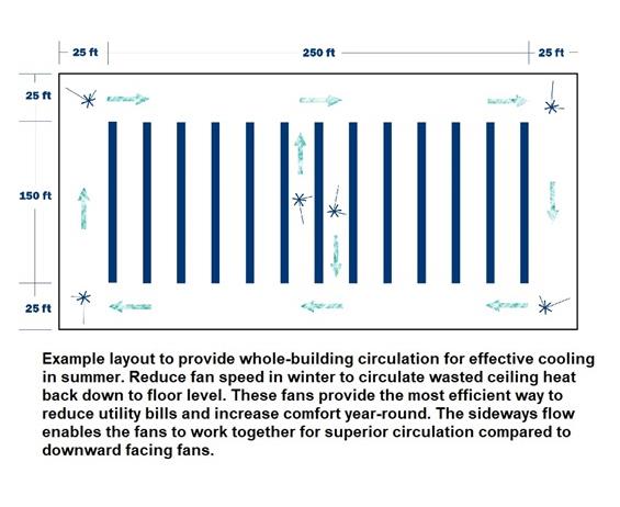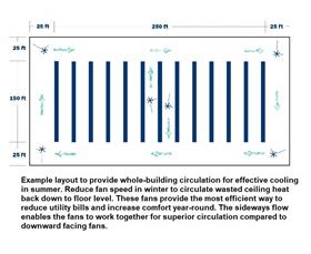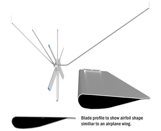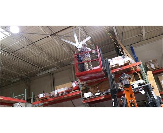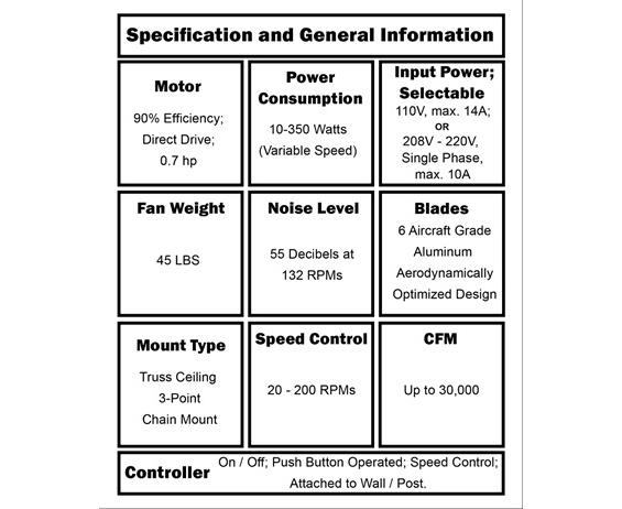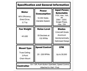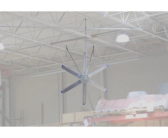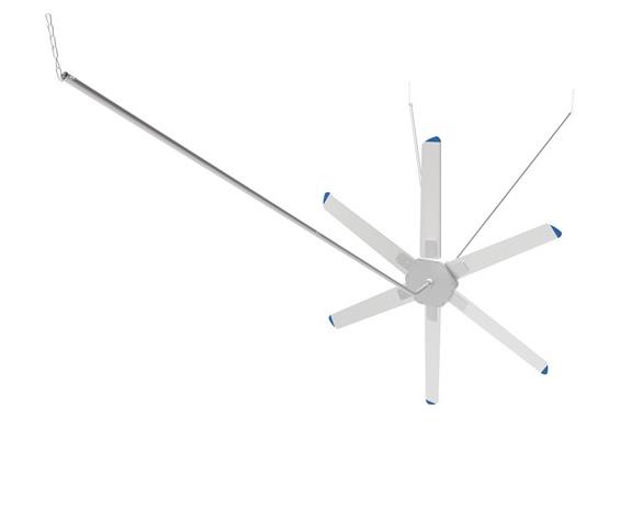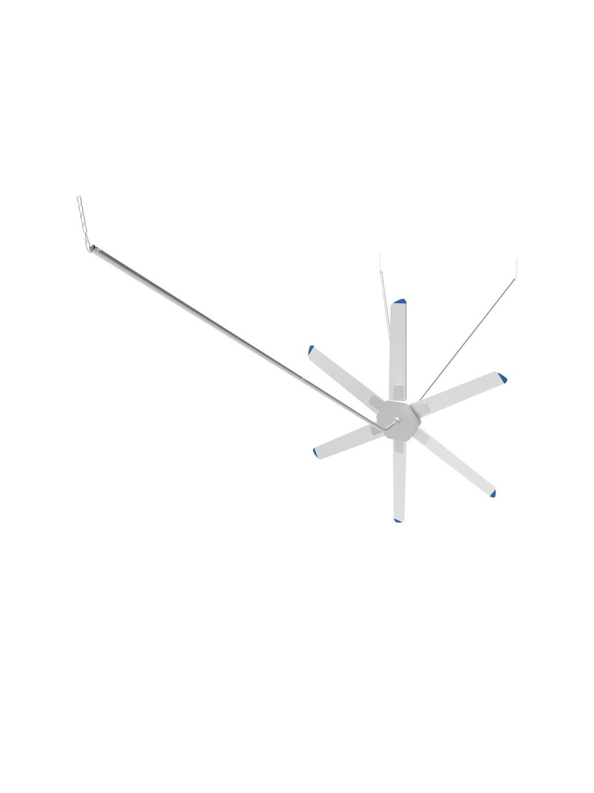 Not your typical ceiling fan! These industrial 7' HVLS fans ceiling mount to blow air sideways and work together to provide superior circulation in larger facilities with ceiling heights of 18 or more feet. These lightweight, easy-to-install fans do a better job of reducing utility bills and providing comfort than larger downward-facing ceiling fans. FOB Shipping Point. Installation: At 45 pounds, these fans are easy to install. The 35 pound fan motor can be pole and chain mounted to a ceiling truss and then the blades can be installed. Separately purchased control cable is then run from the fan to the wall mounted control box. Blades: The Herkules fan utilizes a custom blade shape to achieve large air flow at a very low power usage. Most fan blades on the market are extruded into simple shapes. Herkules' blades are made from aircraft grade aluminum and bent to achieve an optimized design. Mounting Kit: The pole and chain mounting kit provides a connection to the ceiling truss that holds the an solidly in place.