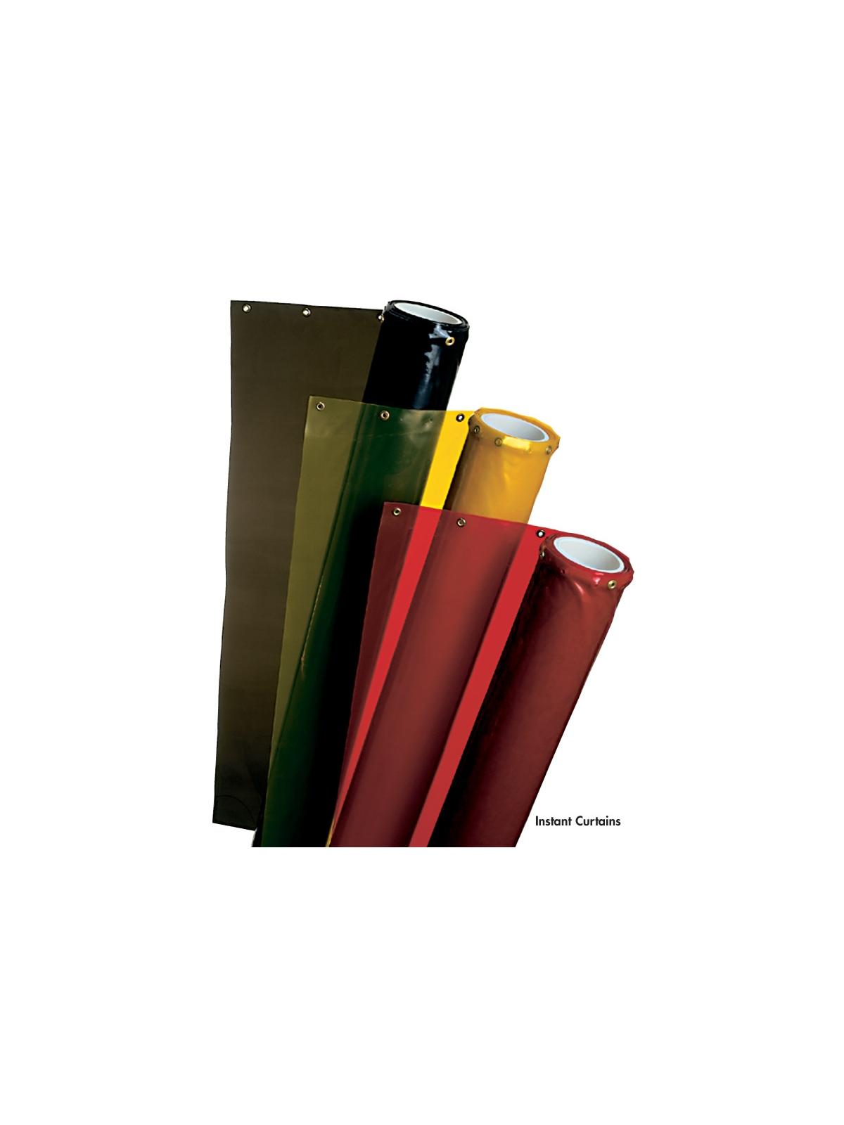 These transparent welding curtains come in 25 yard rolls for easy, convenient and instant set-up of welding barrier protection - regardless of your size requirements. Simply cut your own curtains as you need them with scissors or utility knife. Instant curtain roll has brass grommets every 12" for easy hanging. Available in Smoke Gray, Orange, Blue, Yellow and Green. FOB Shipping Point.