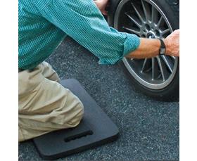 The KneeSaver™ kneeling mat reduces knee and lower back pain from prolonged kneeling on hard surfaces. Features 1" thick closed-cell nitrile blend, resilient foam. Mat is non-conductive with minimal water absorption. Lightweight with built-in handle for easy carrying and storage. Black in color. FOB Shipping Point.