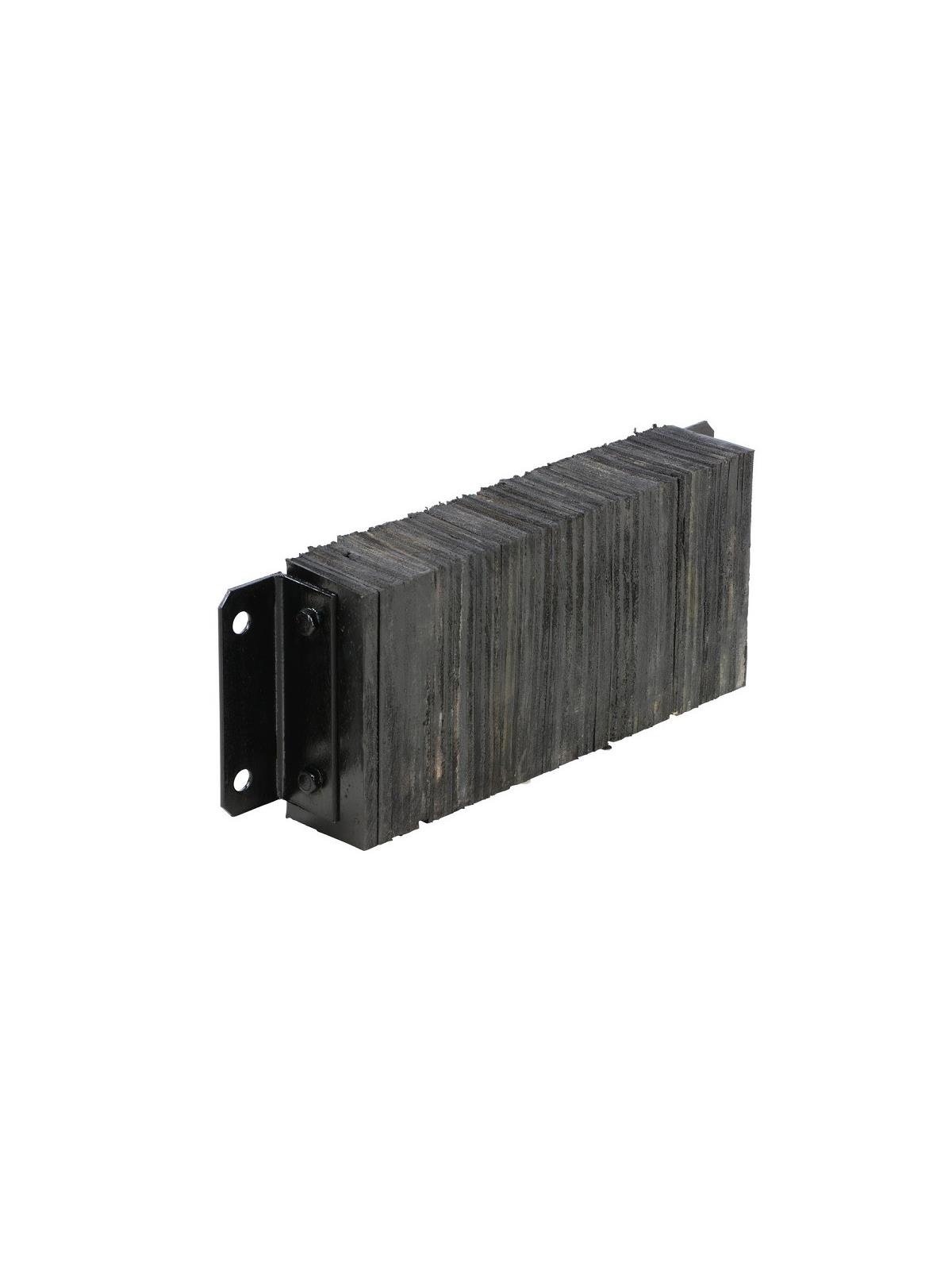 • Shock-absorbing laminated bumpers are made of indestructible piles of truck tire fabric.