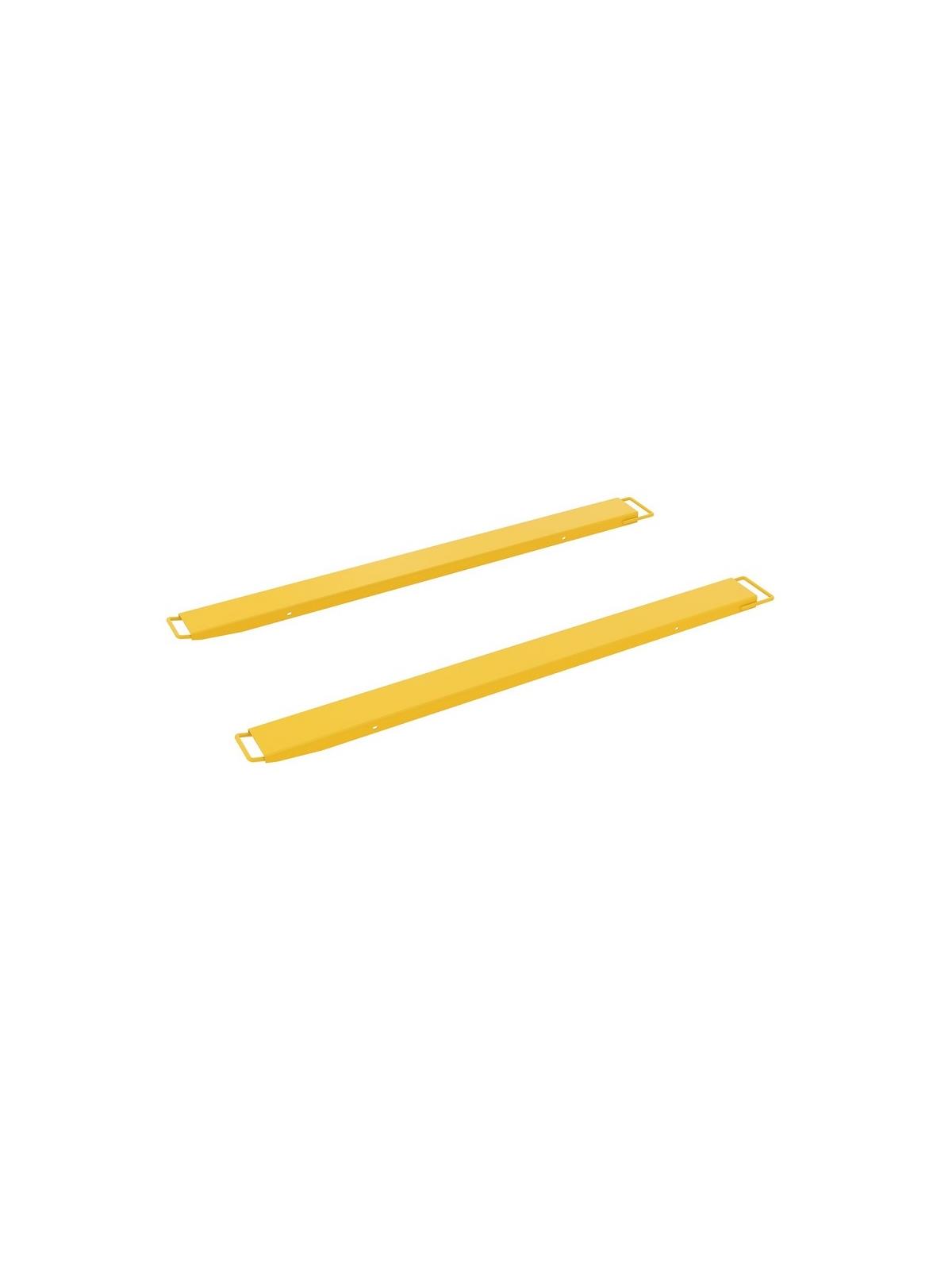 Rugged and durable welded steel construction with cast steel fork tips. Steel retaining strap prevents fork extensions from sliding off forks during use. Extensions are put on by sliding them up the fork at a 45° angle. OSHA regulations require that extensions are no more than 150% of the existing fork length. Powder coat Yellow finish. FOB Shipping Point.