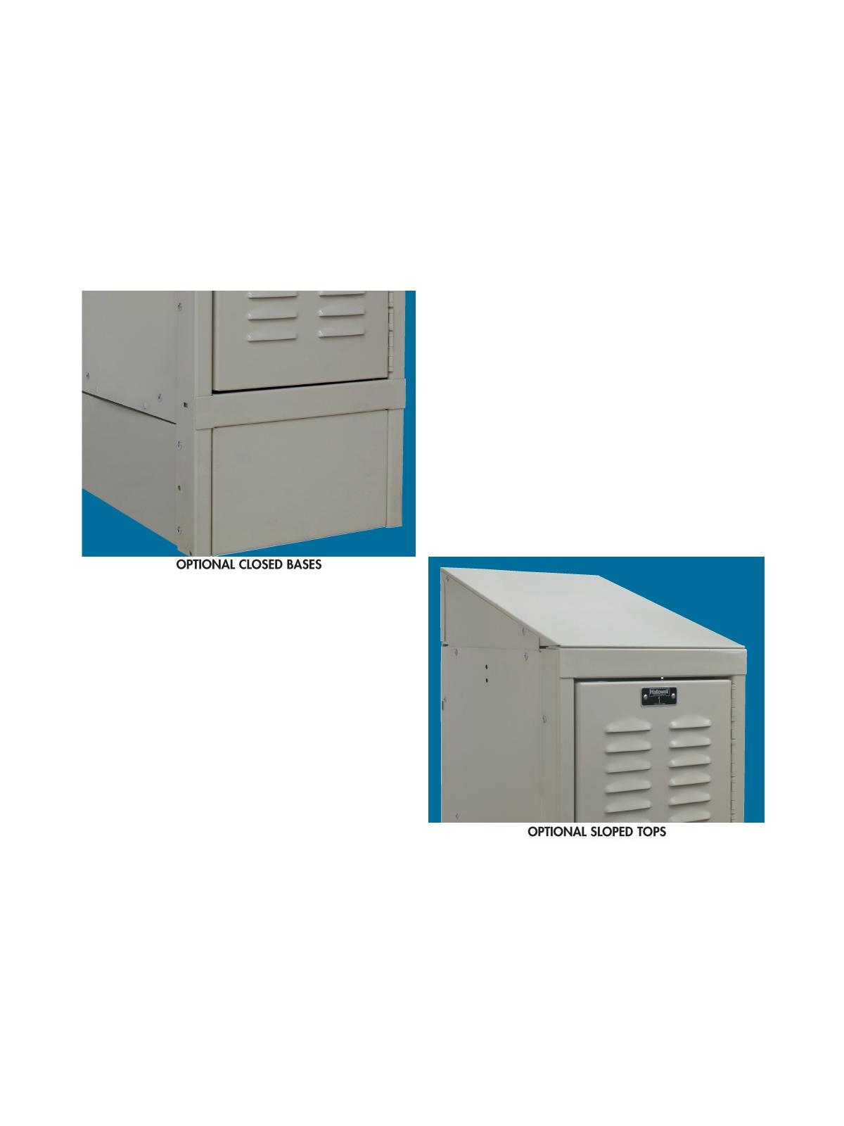 Locker Accessories for Premium Lockers and ValueMax™ Lockers including sloped tops and ends and closed bases. Available in Dark Gray (HG), Tan (PT), Marine Blue (MB), Black (ME), and Light Gray (PL) - please specify color in comments section when ordering. 16-Person lockers are available in Tan (PT) and Dark Gray (HG) - please specify color in comments section when ordering. FOB Shipping Point. See Related Items tab for Valuemax™ Lockers and Premium Lockers.