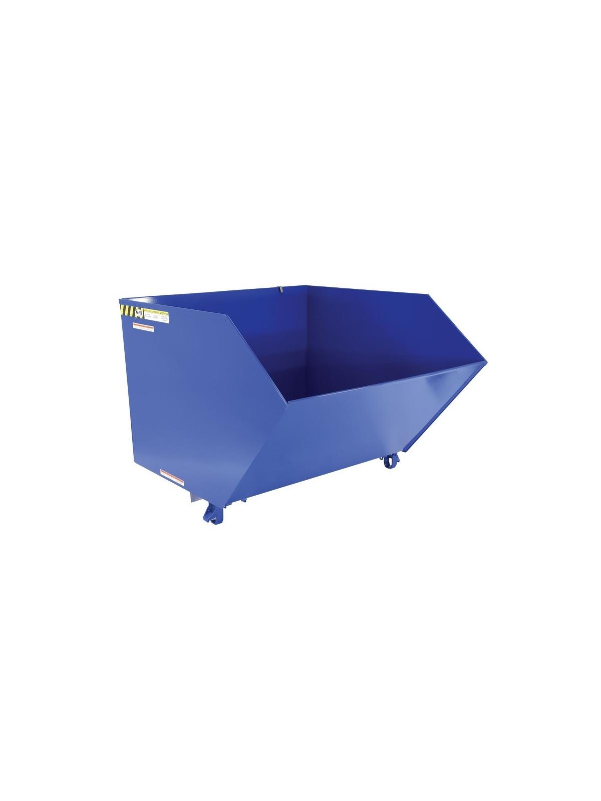 Units feature a full 90 degree dump angle with a cushioned rubber bumper stop. The low profile design is essential for convenient loading. Dumping with a fork truck is quick and simple. A cable is pulled from the seat of the fork truck to dump the hopper. The unit returns to an upright and locked position when lowered to the ground. The included safety restraint/chain must be securely attached to the lift truck without slack. 22" L usable fork pockets measure 7" W x 2"H. Formed base thickness is 1/4". Blue baked-in powder-coated toughness with a galvanized base. Other colors available-contact factory. Models H-25 may be stacked with H-50 models, while the H-100 can be stacked with the H-150 models. The H-200 hoppers can only be stacked with other H-200 series models. Must be attached to fork truck when dumping. FOB Shipping Point. High Strength Hoppers - Material provides greater impact resistance against dents and punctures from dropped materials. Ideal for foundry environments. Due to tariffs and market conditions, pricing subject to change.