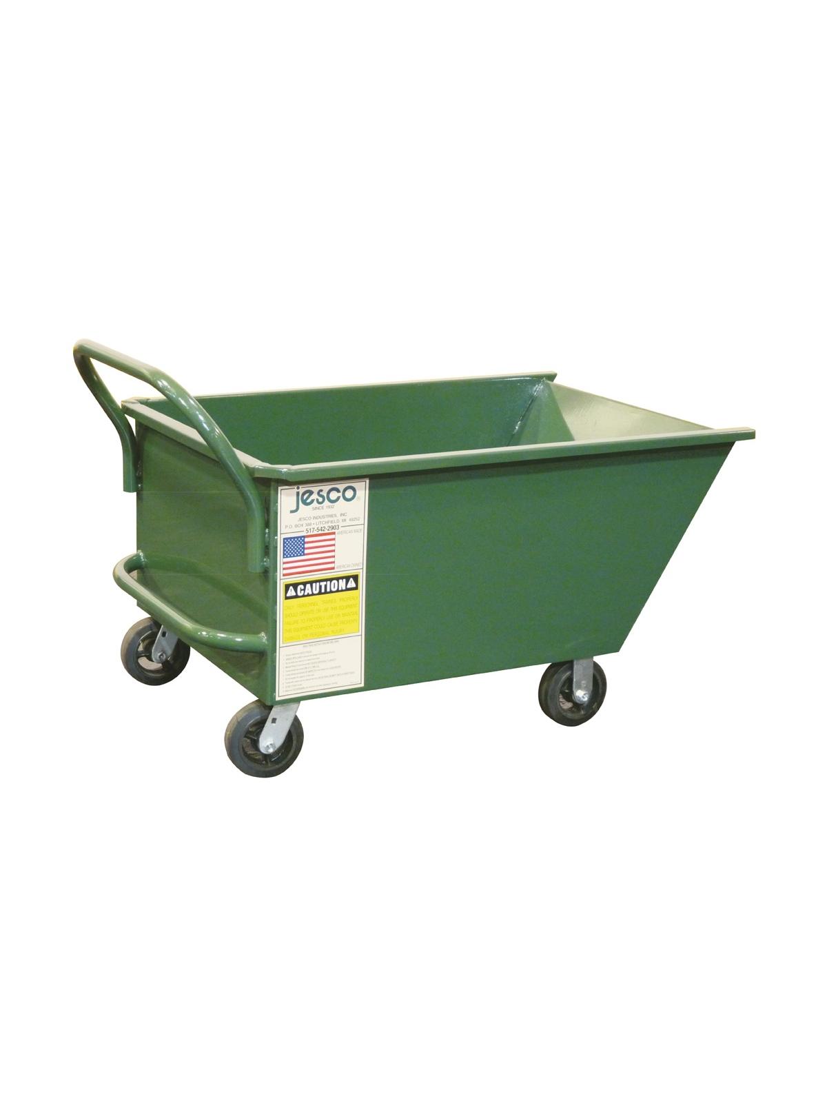 The Low Profile Manual Tilt Trucks are manufactured with 13 gauge steel with reinforced corners. They are designed for manual handling of lightweight materials and roll on 6 x 2" mold on rubber casters. Trucks stand 30" tall to the top of the handle while the bucket measures 24" from the floor to the top edge. Units are not to be used with a forklift or with a rotator attachment. These units are not watertight. Vista Green in color. FOB Shipping Point.