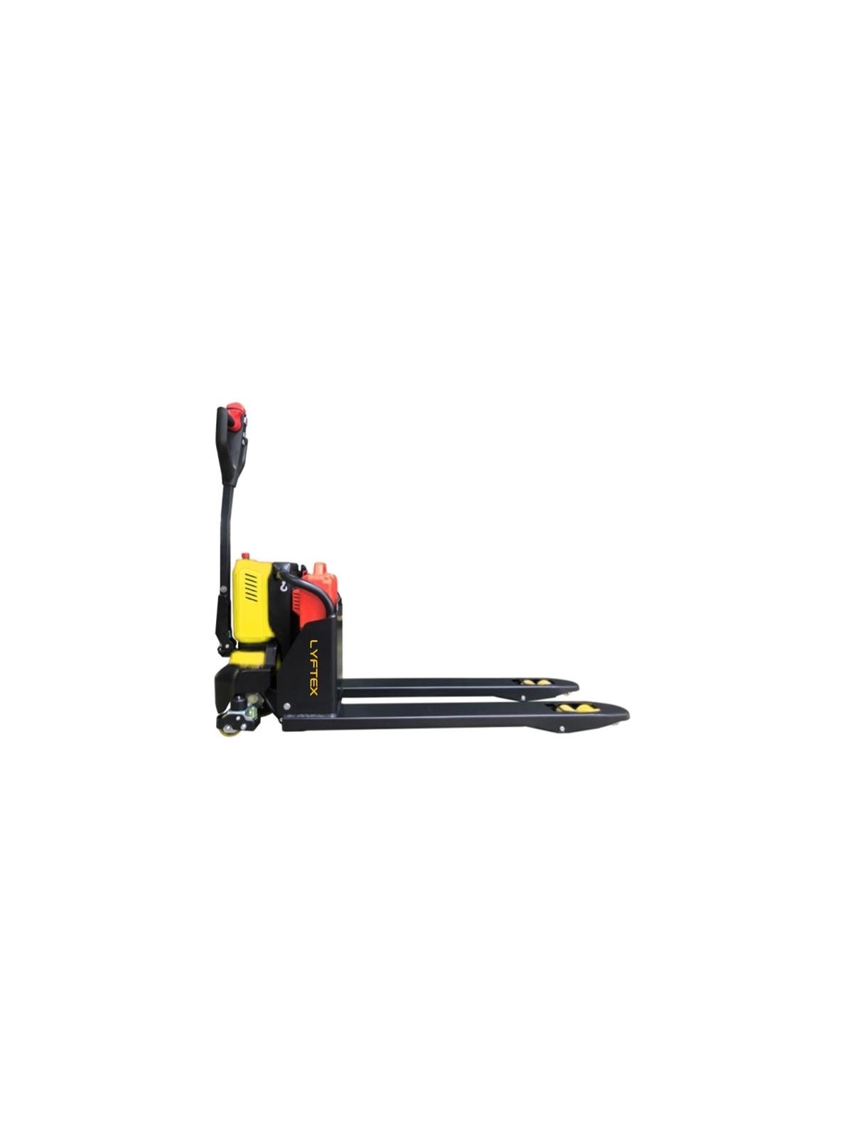 The 2500 Capacity HLXE25E Electric Pallet Jack from LYFTEX features a full electric-powered drive and lift capability of carrying and lifting loads of up to 2,500 lbs. The unit includes a heavy duty 24V/15Ah Lithium-Ion battery with fast charging ability which provide you with more than enough power to continuously work for 4.5 hrs and a maximum charge time of only 2.5 hours. Opportunity charge is also applicable. The battery pack is easily replaceable allowing you to continuously use the unit while charging a spare battery. This Fully-Electric Pallet Truck comes standard with a smart and ergonomic tiller which contains all the essential functions to finish any task at hand. Controls are conveniently located and easily accessible. The Pallet Jack has a compact and sturdy skeleton design made out of superior grade steel ensuring toughness, strength and durability. It has excellent gradeability performance and robustness ensuring a long life span despite constant rough usage. It is available in two different fork sizes measuring either in 21” or 27” wide and 45” long which is perfect for carrying US type pallets and skids. It is equipped with non-marking polyurethane steering and load wheels which offer plenty of maneuverability and stability making it perfect for material handling done indoors or outdoors.