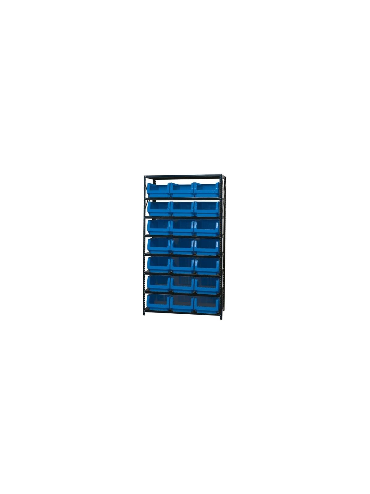 These ultra heavy-duty shelving systems incorporate Giant Hopper Bins. Five combinations solve any storage requirements. Bins offer optional clear window fronts as well as dividers for maximum storage capacity. Shelving is tough 42"W. with a 475 lb. capacity per shelf. Smooth powder coat finish won’t rust or corrode. Bins available in Blue, Yellow, Green, Red or Black. FOB Shipping Point.