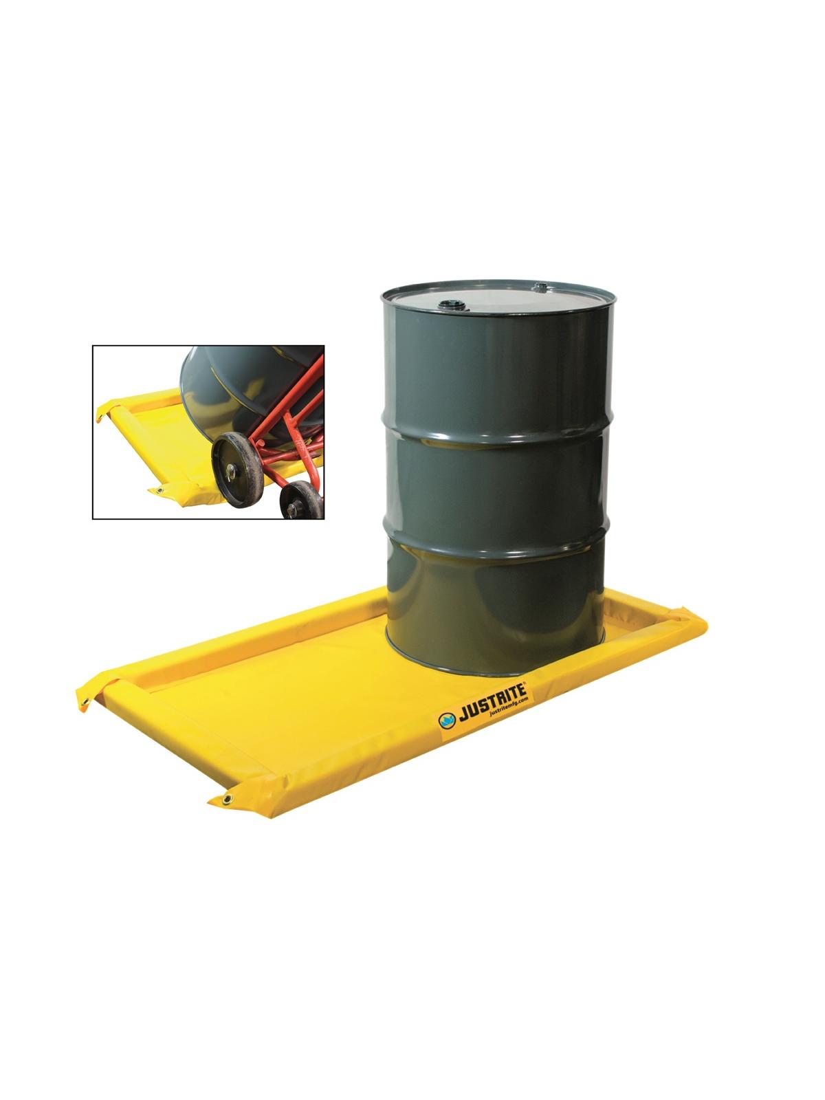 Quickly contain minor spills and leaks during temporary storage of drums, machine parts, batteries, and equipment. No assembly required - simply unfold and use. Encased urethane foam sidewalls offer easy roll-through access without the need for a ramp. Walls quickly spring back into place. Lightweight PVC coated fabric provides broad UV and chemical resistance. FOB Shipping Point.