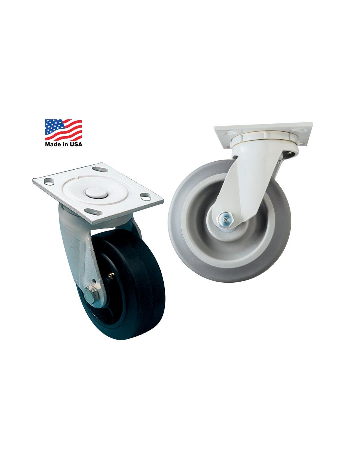 No-weld construction on caster horn assures greater stability. Large 3/4" orbital cold formed king pin and lower raceway are one-piece constructed for added strength. Heavy-duty cylindrical formed legs and protected zerk fitting. Powder coated finish. FOB Shipping Point.