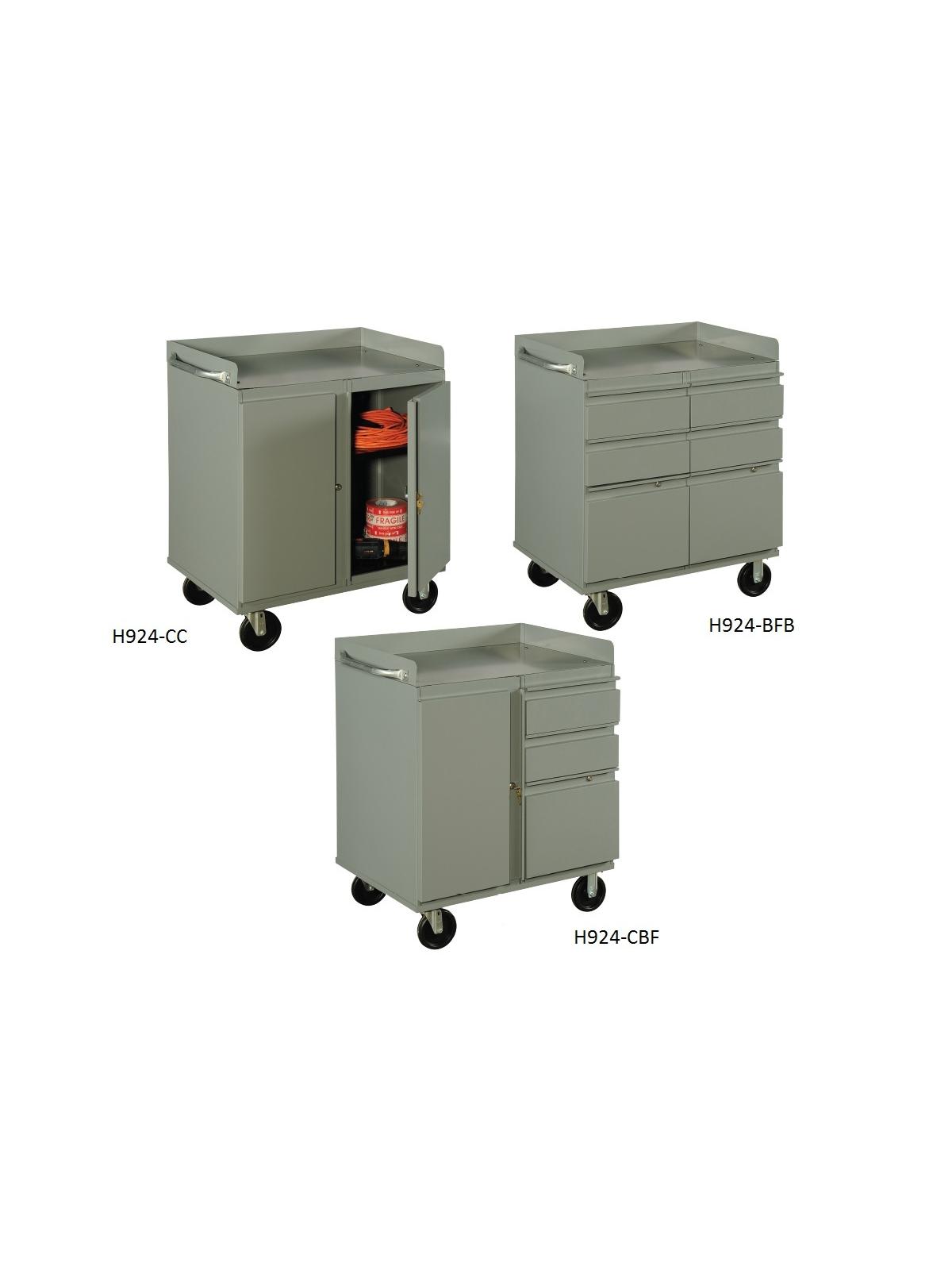 Drawers have full extension drawer slides, rated at 125 lbs. per drawer. Heavy duty 14 gauge work surface with 3" back and end stops. Heavy duty 5" casters (2 rigid, 2 swivel with brakes). Powder coated finish. Standard color is Gray. FOB Shipping Point. Steel surcharge may apply.