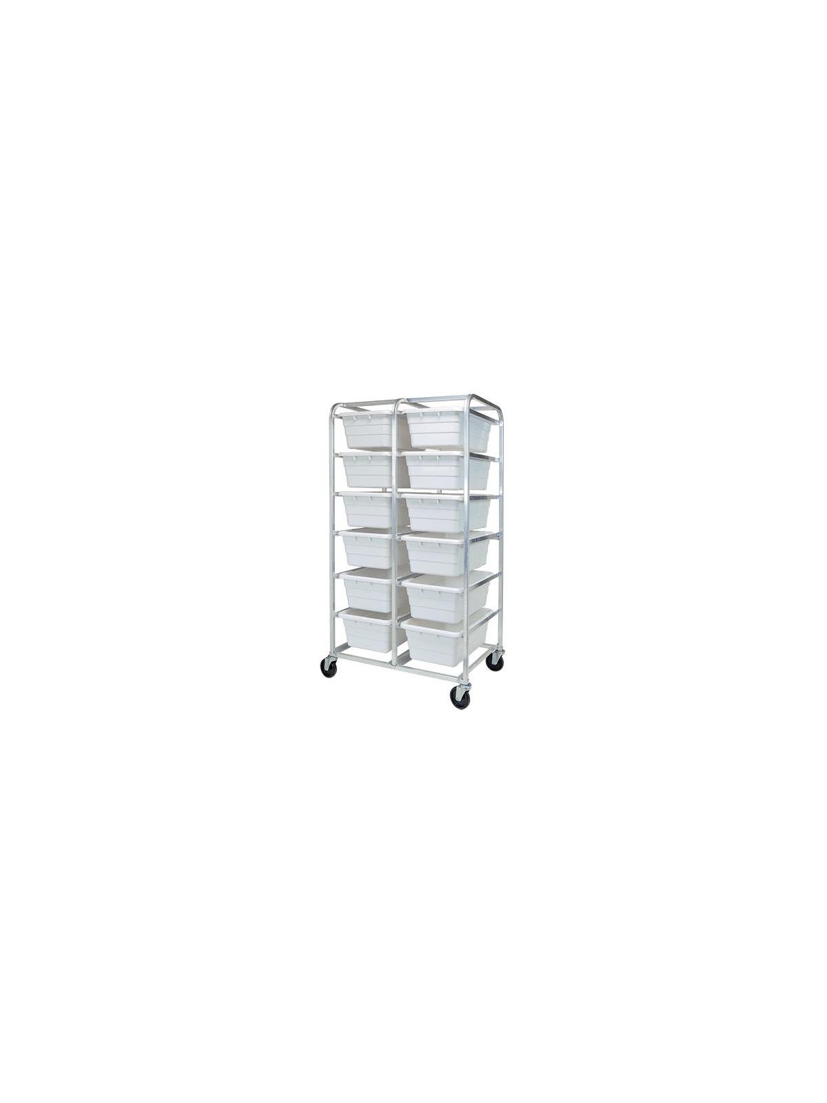 Aluminum Tub Rack transports and stores all kinds of products. Cart comes complete with tubs. Rolls on 5" rubber wheel casters. Tubs available in Gray, Blue, White, Red, or Yellow. FOB Shipping Point.