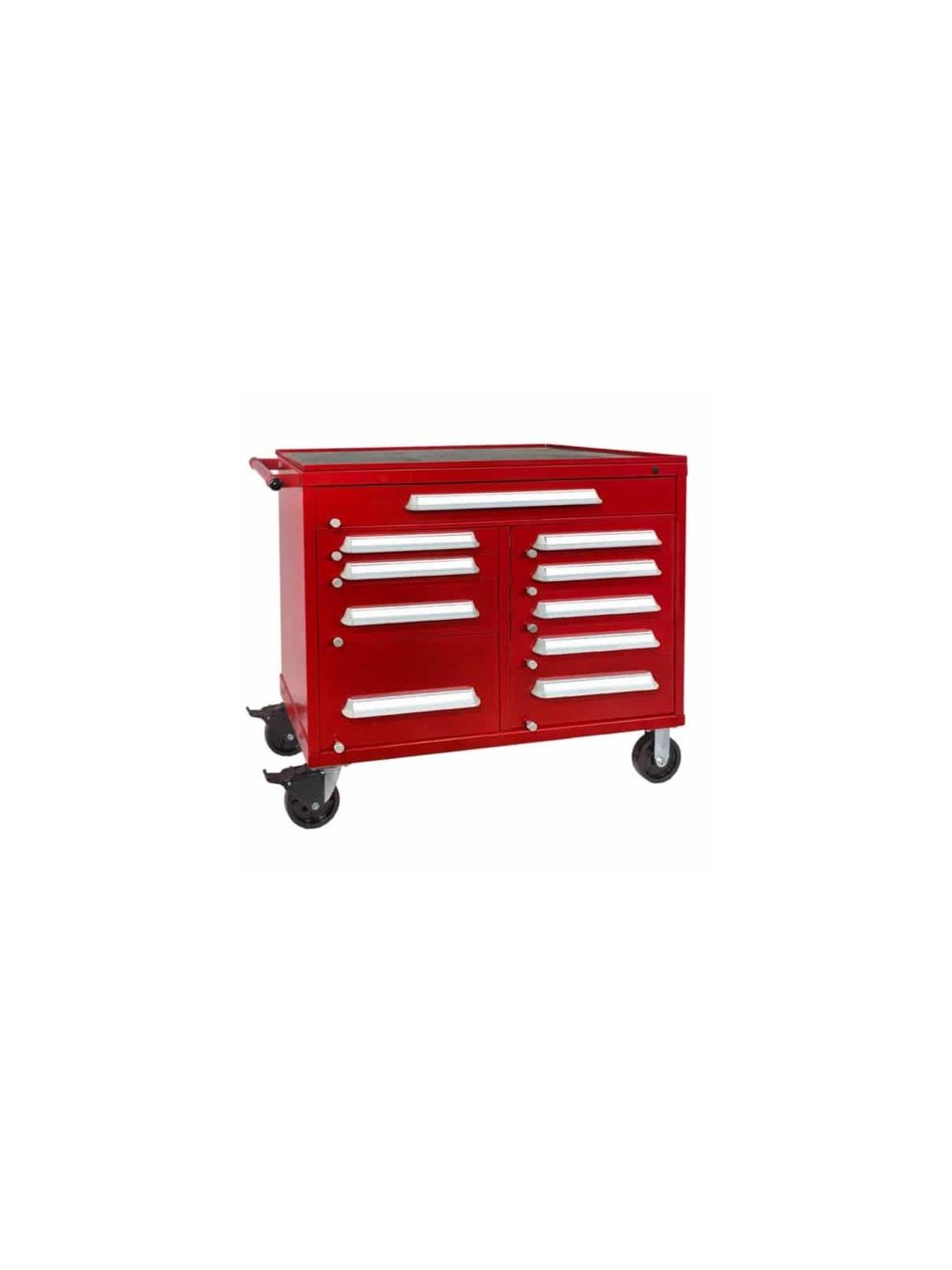 Mobile Workbench features 10 latch-in/latch-out drawers and 72 compartments. Includes a retainer top with vinyl mat, layout kits, handle kit and 6" polyolefin casters; 2 fixed and 2 swivel with brakes. FOB Shipping Point.