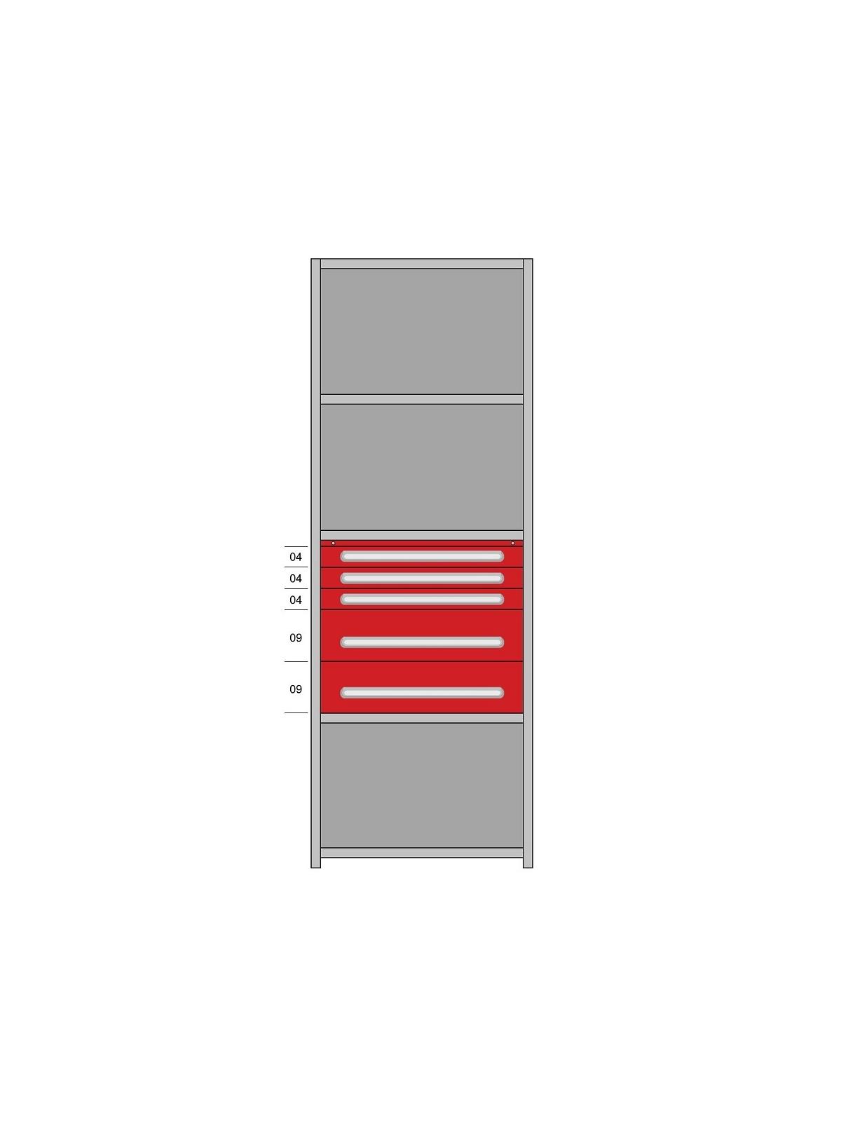 Modular Drawers in Shelving allows you to combine the storage of bulky items on shelves and small parts, tools, and supplies in drawers.
